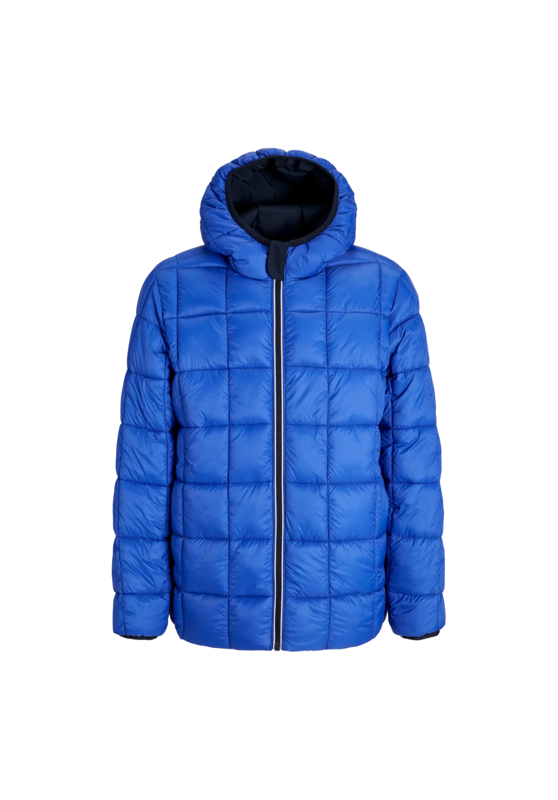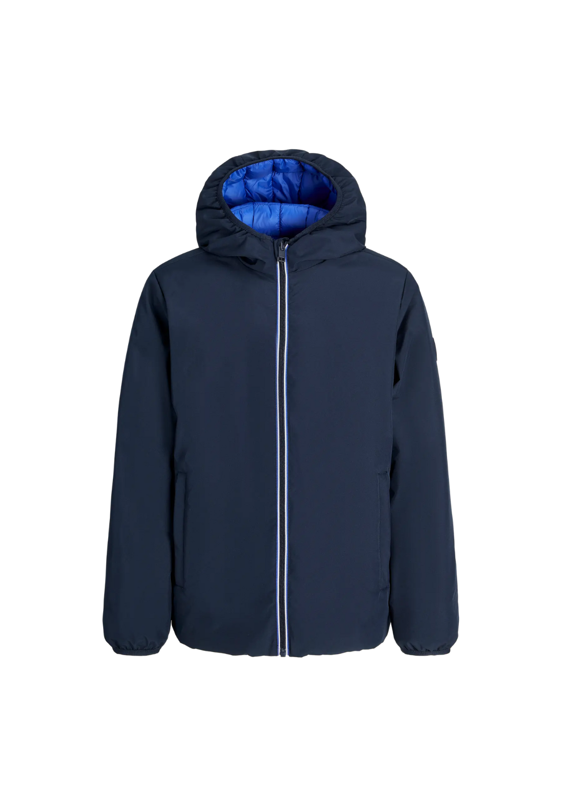Chaqueta reversible, con capucha y cierre de cremallera.