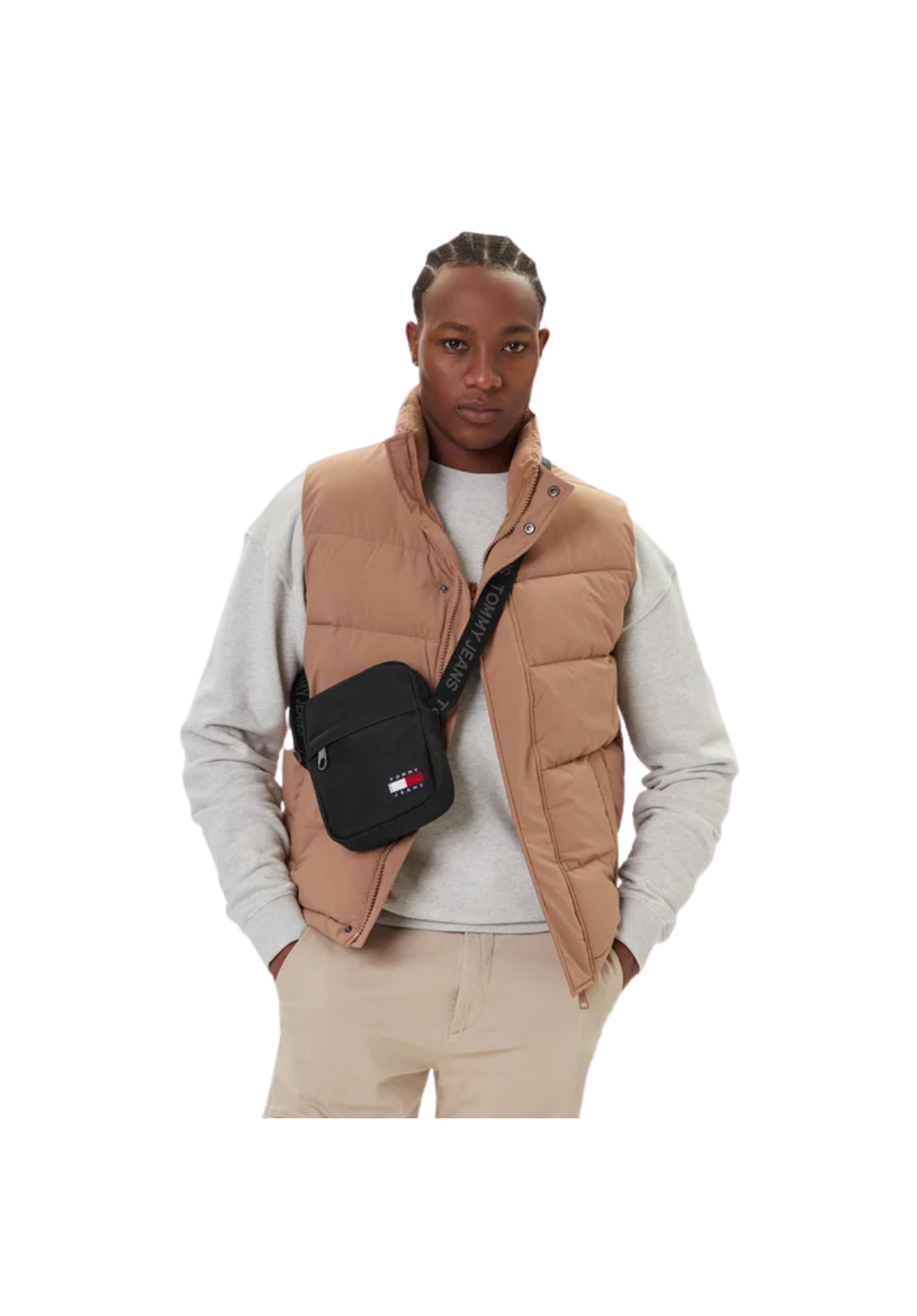 Bandolera con cierre de cremallera y bolsillo frontal con cremallera. Correa ajustable.