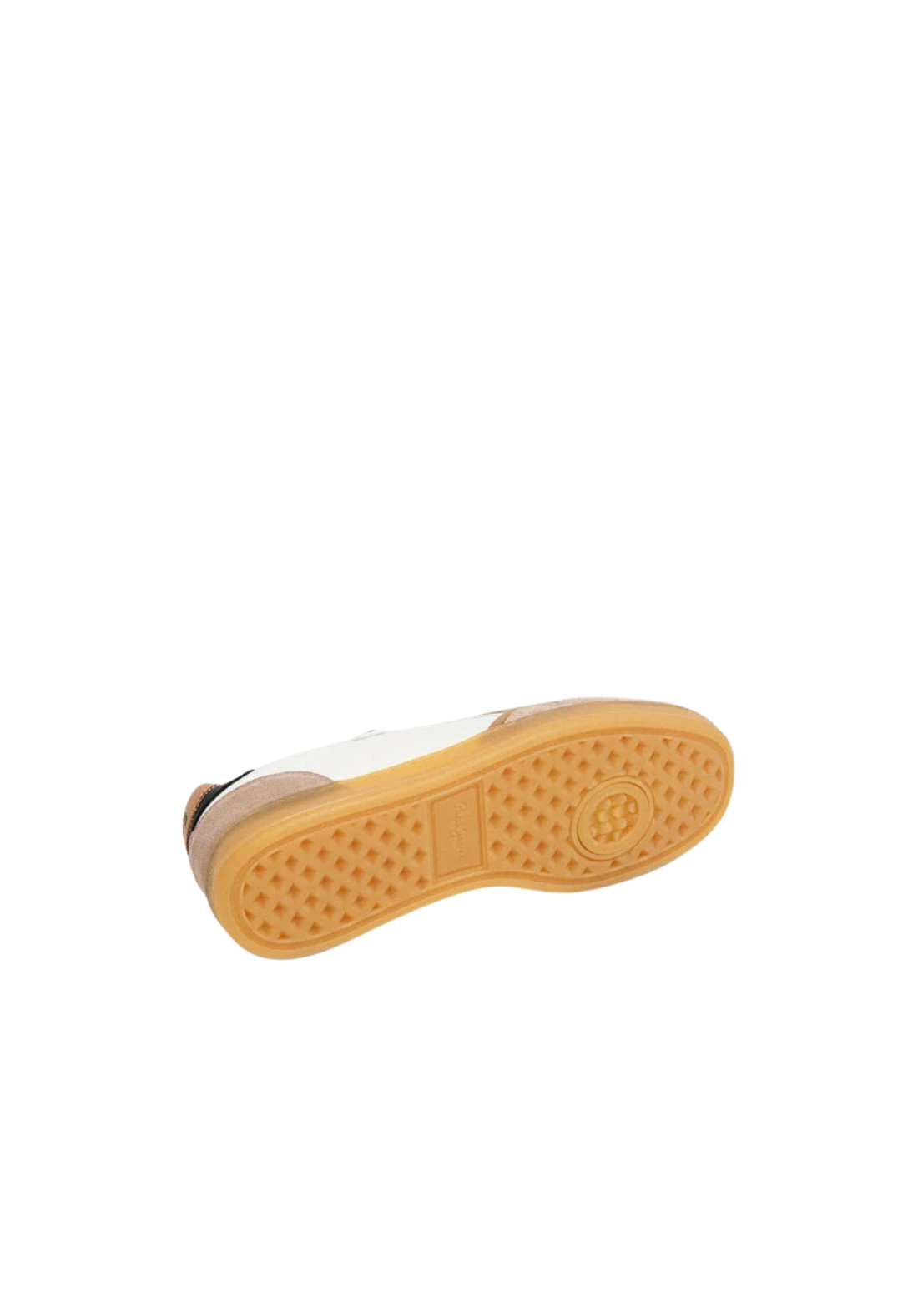 Zapatillas confeccionadas en piel de vacuno con detalles de ante en puntera, lengüeta y parte inferior del talón. Cierre de cordones con anillas en forma de D.