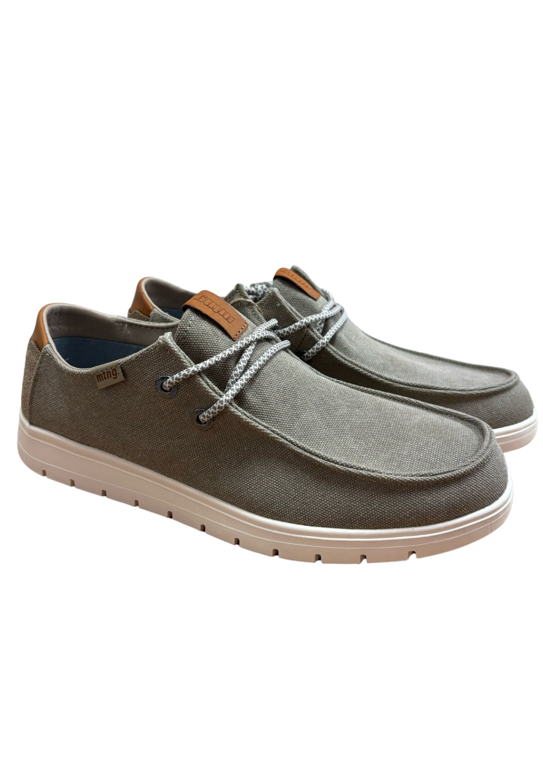 Zapato de lona de la marca Mustang. Muy ligero y cómodo, cordones bicolor y con suela color blanco de goma.