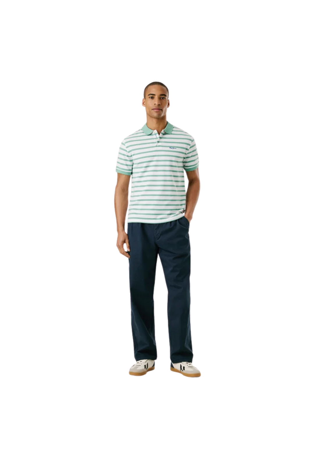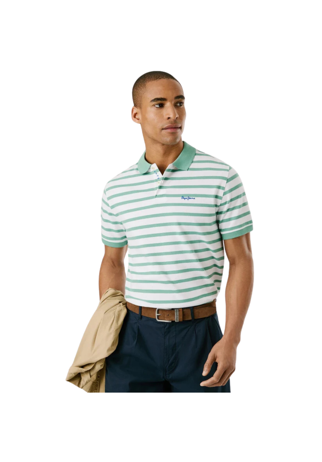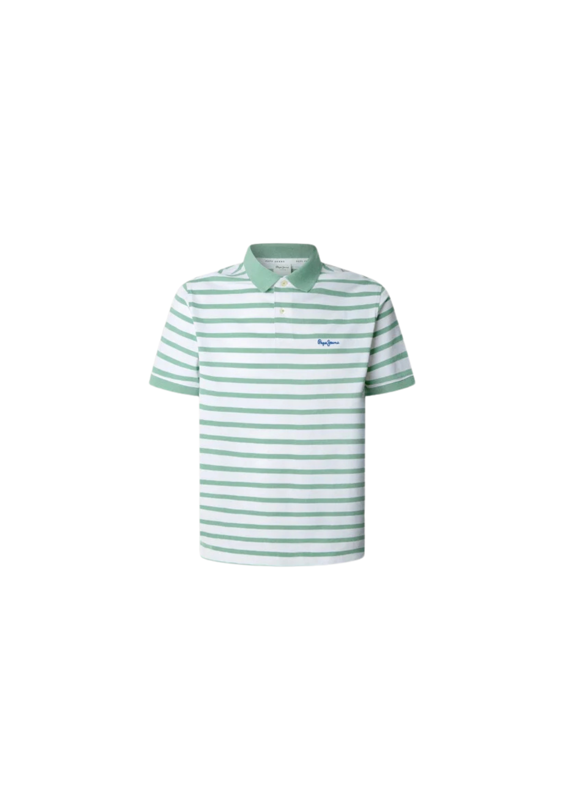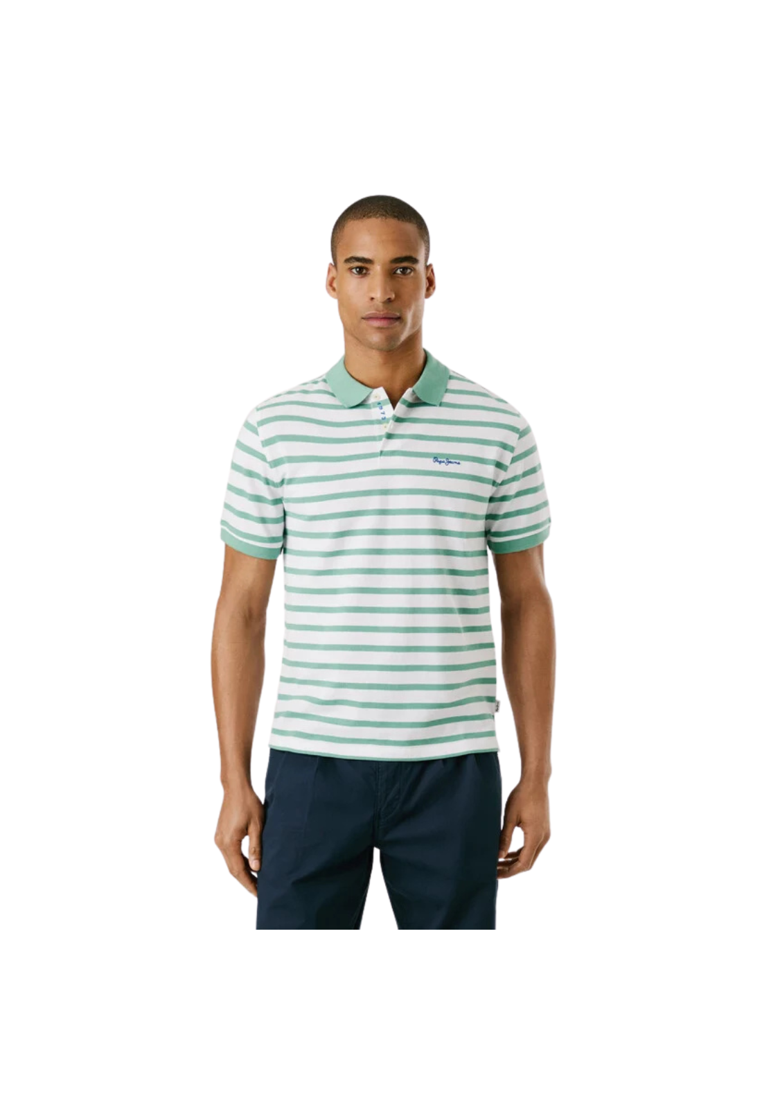 Polo de manga corta y tapeta de dos botones en tejido piqué de algodón. Estampado de rayas en hilos teñidos. Tiene acabado doble pespunte en bajo.