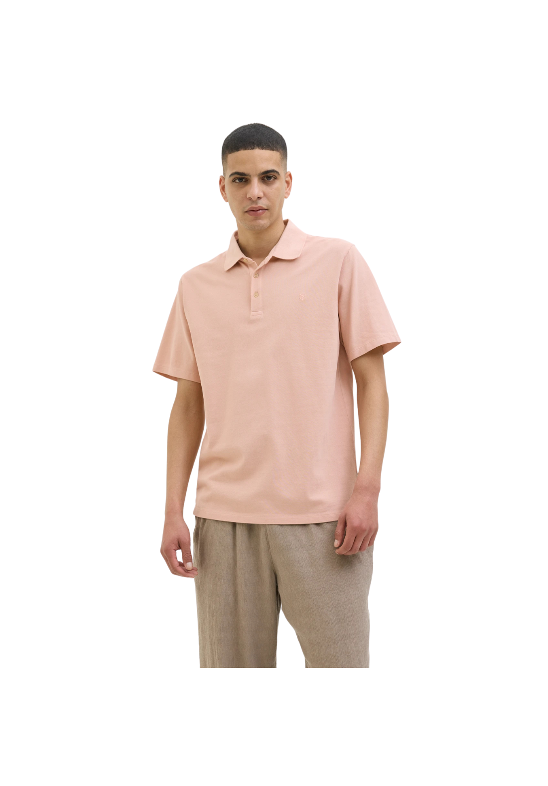 Polo de manga corta y cierre de botones. Detalle de bordado.