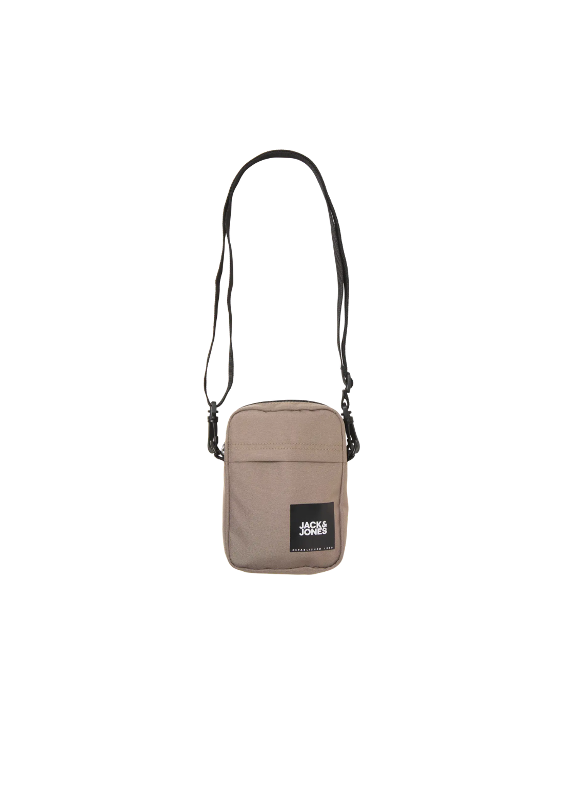 Bolso tipo bandolera con cierre de cremallera y asa.