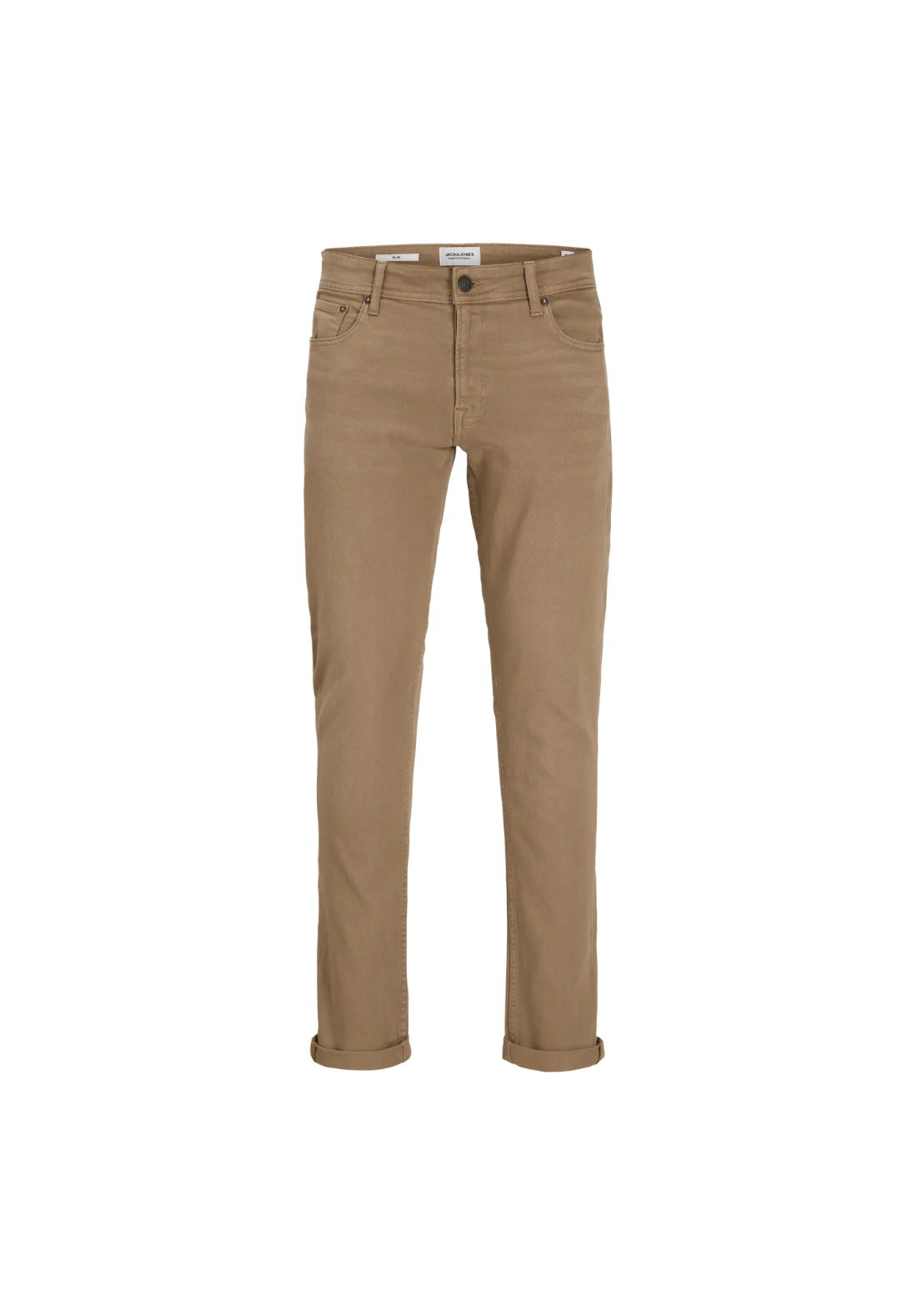 Pantalones chinos con cierre de botón y cremallera. Tiene 5 bolsillos y es de talle medio. La pernera tiene el bajo con vuelta y el corte es ajustado.