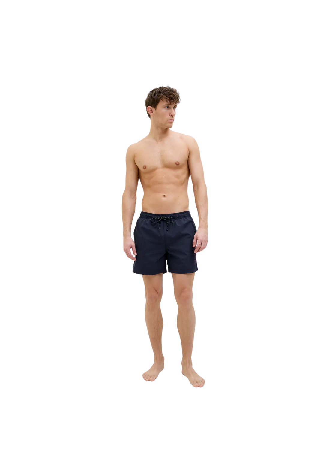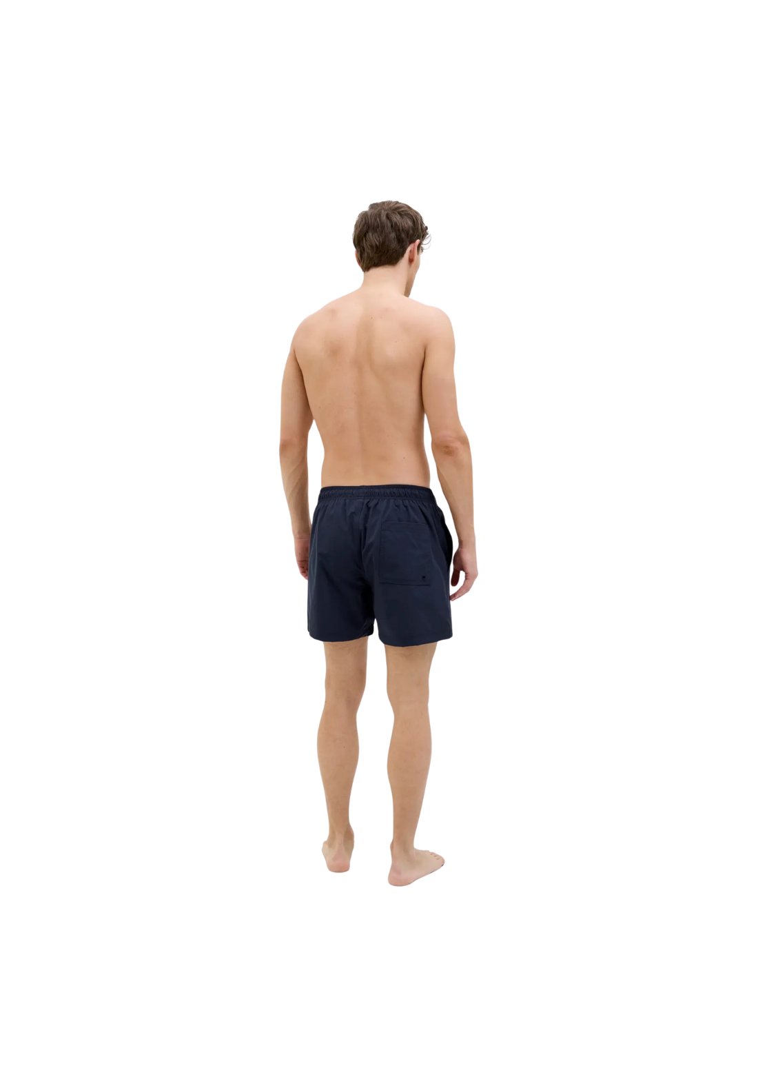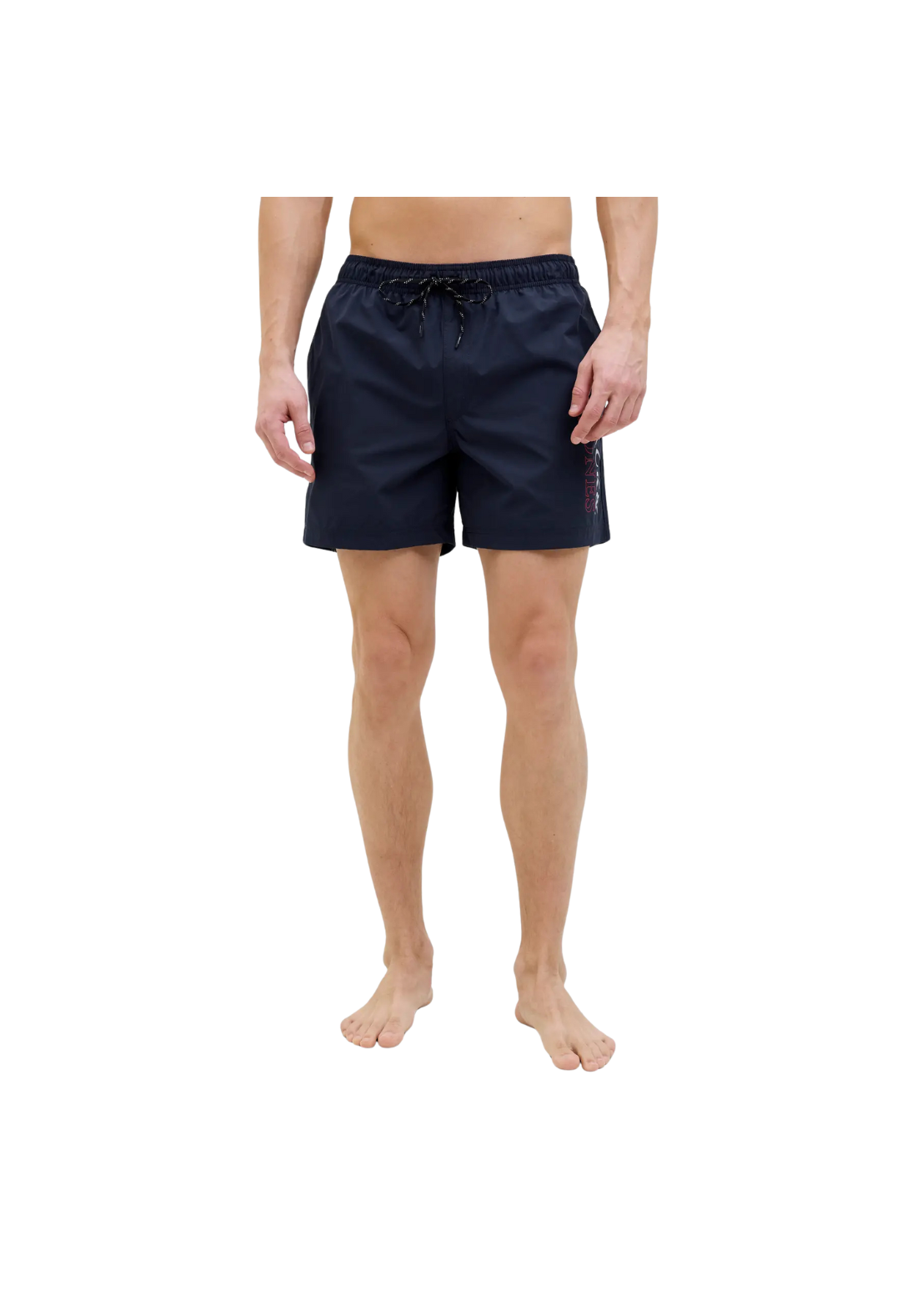 Bañador corto, de tiro medio, con bolsillos traseros. Tiene cordón ajustable a la cintura y la cinturilla es elástica.