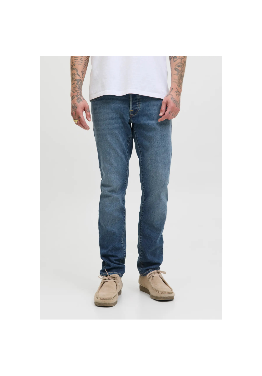 Vaqueros con cierre de botón y cremallera. Tiene 5 bolsillos. Es de tiro bajo.