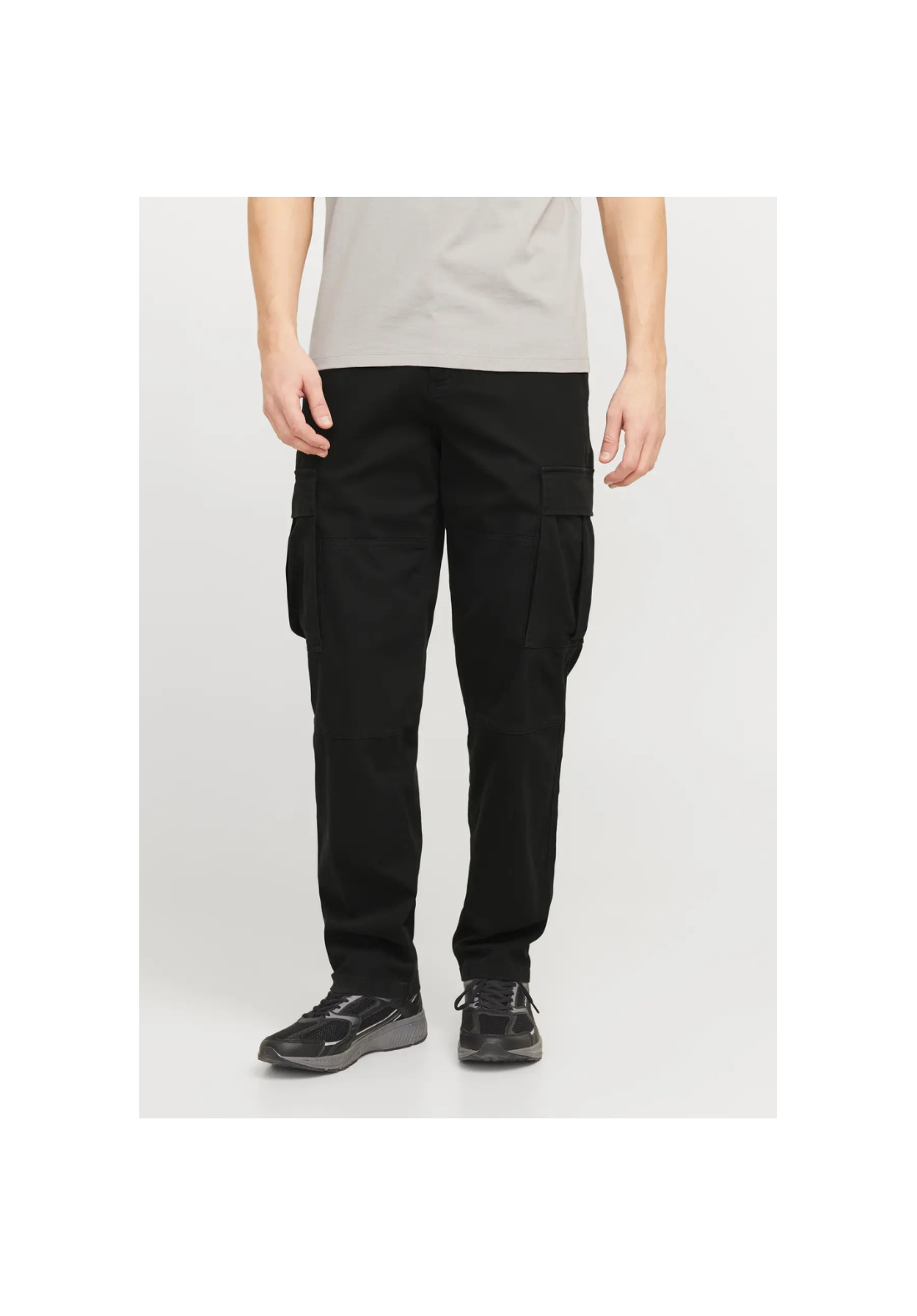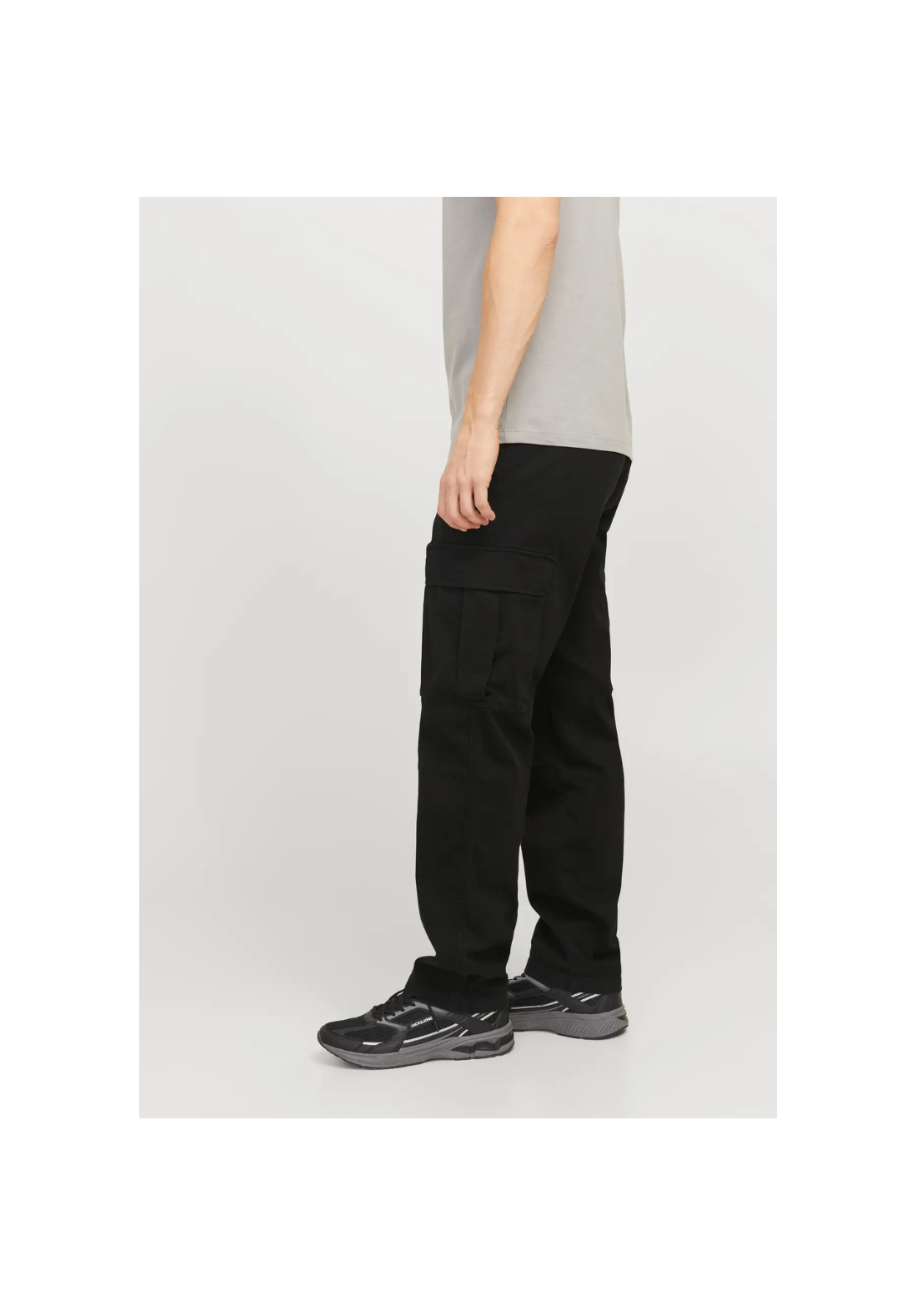 Pantalones cargo de corte holgado, con cierre de botón y cremallera. Tiene bolsillos delanteros, laterales y traseros. Es de tiro medio