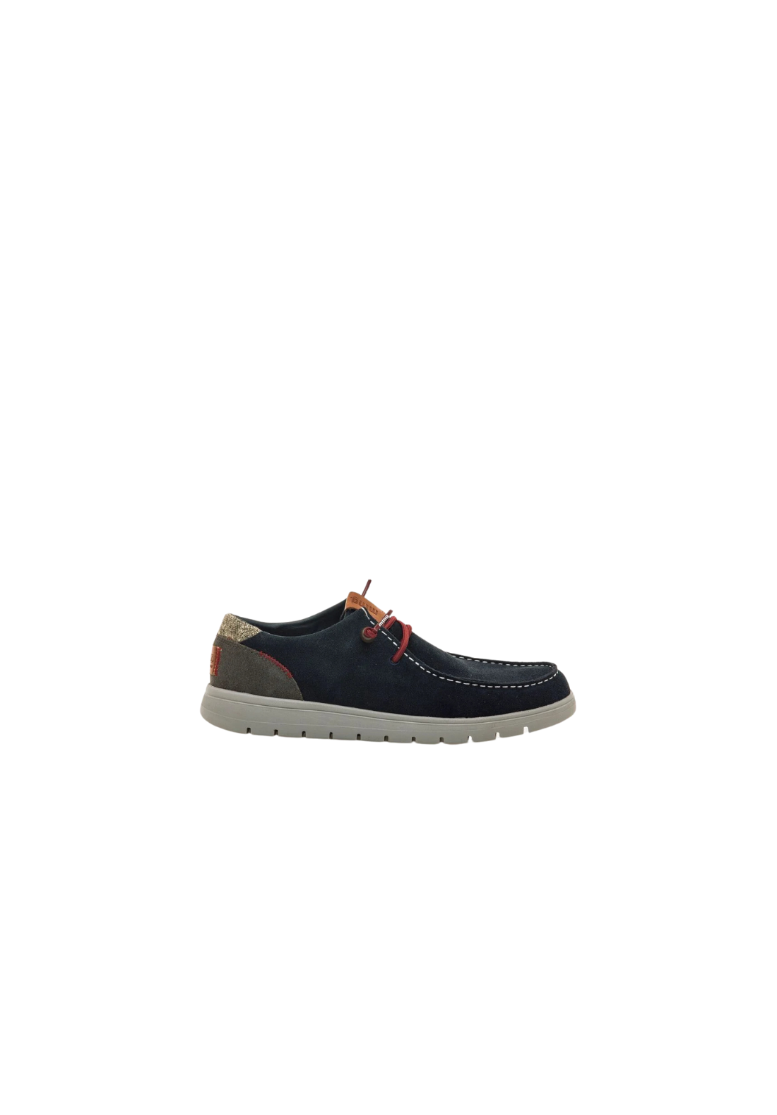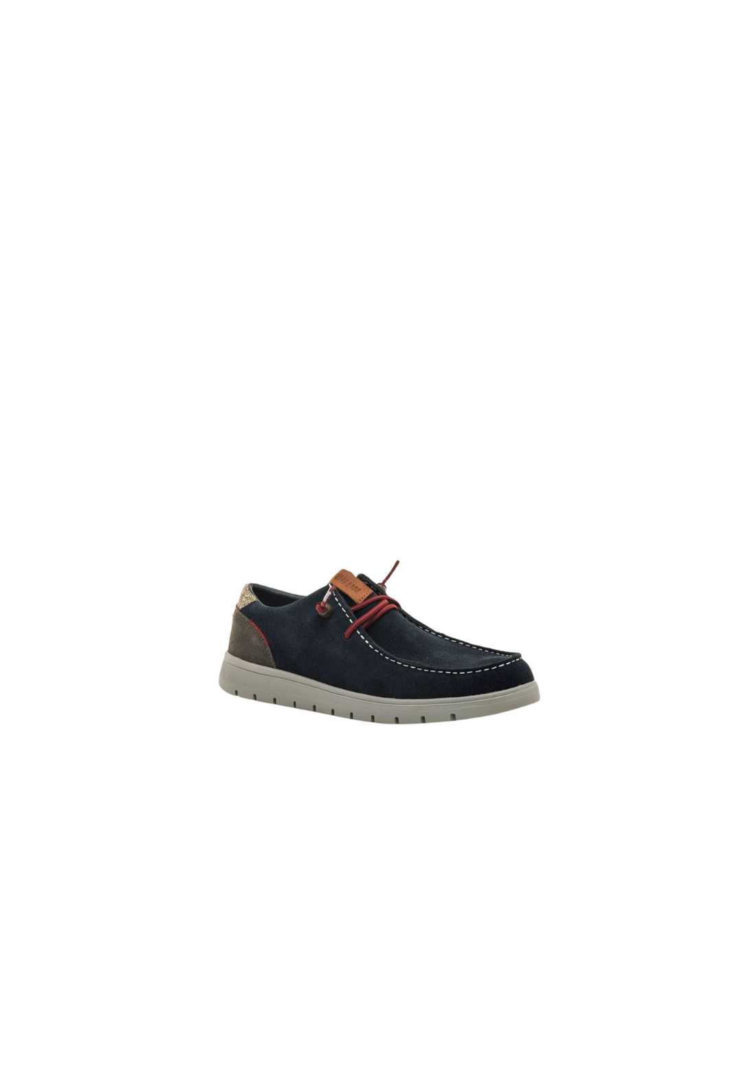 Zapato tipo mocasín de piel . Este modelo destaca por su diseño casual con detalles, cordones rojos y costuras visibles. La suela blanca proporciona una pisada cómoda y ligera. Tienen una plantilla extraíble con tecnología Starfit y diseño termoconformado,  se adapta perfectamente al contorno del pie para ofrecer un soporte óptimo. Espuma Comfort Foam, garantizan una amortiguación excepcional y comodidad. Fabricado con piel que proviene de fabricantes aprobados por el protocolo «Leather Working Group».