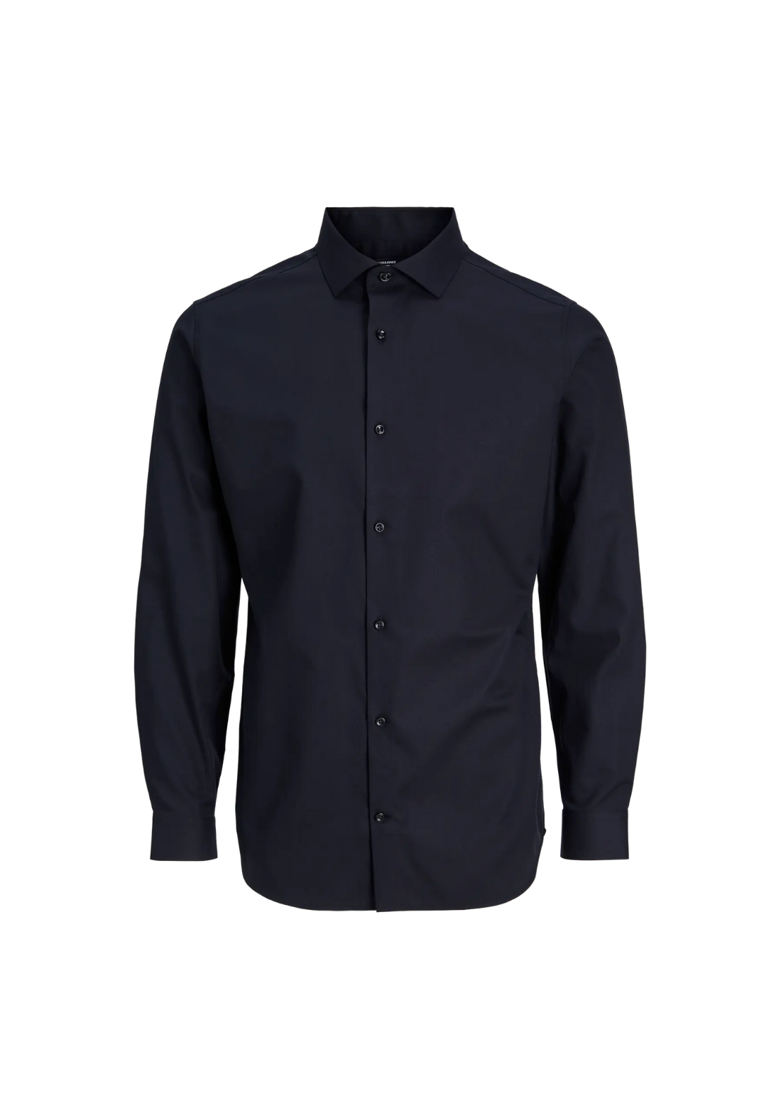 Camisa de manga larga, con cuello camisero y cierre de botones.
