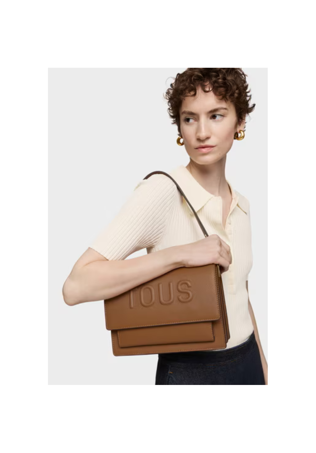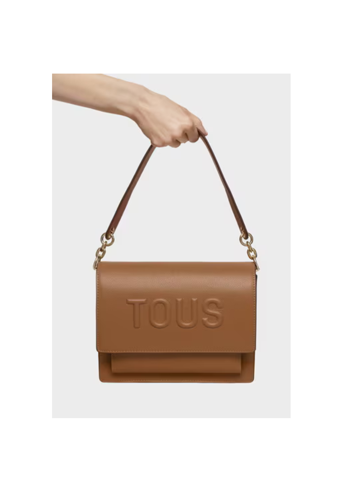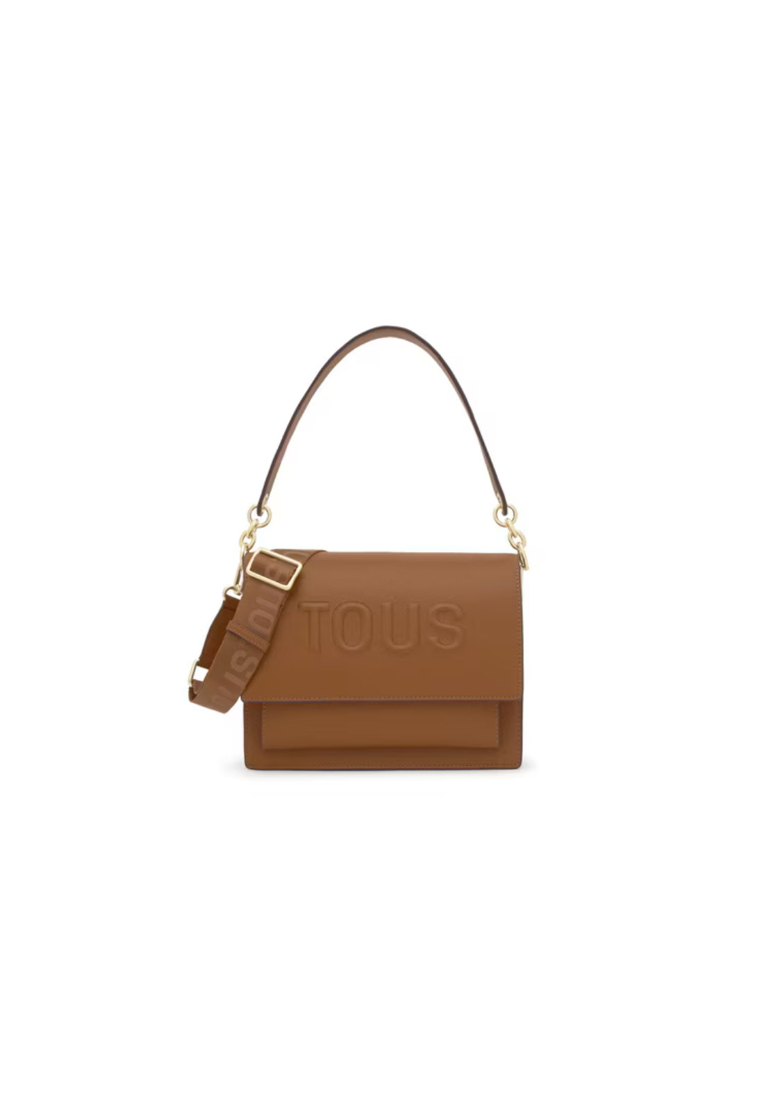 Bolso bandolera mediano Audree TOUS Brenda de poliuretano que incorpora una solapa y cierre con dos botones magnéticos. Cuenta con dos compartimentos separados por uno con cremallera y un bolsillo abierto en la parte delantera. Asa de hombro fija y asa bandolera ajustable y desmontable.