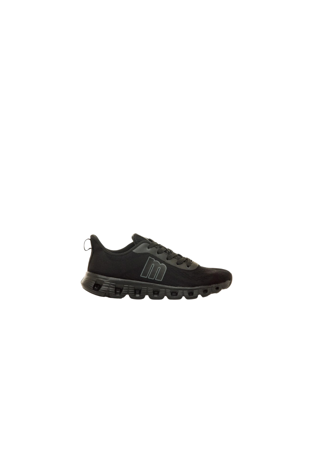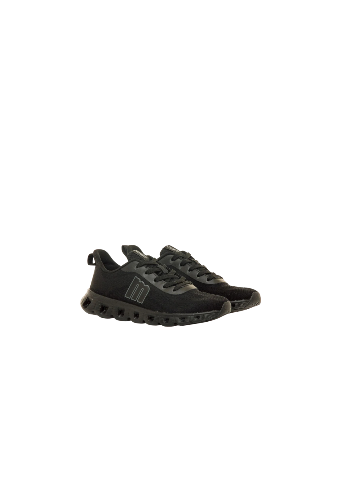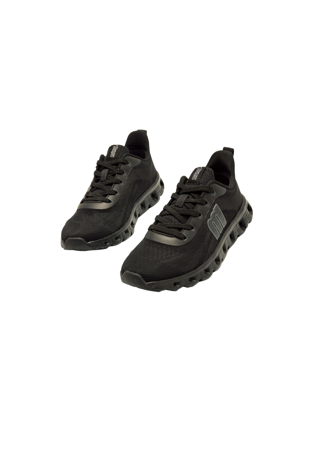Zapatillas negras modelo Cube de Mtng, estilo deportivo. Suela dentada en bloque con aberturas. La parte superior es de tejido técnico sin costuras. Incorporan una plantilla de 4 mm con tecnología Starfit. Su espuma Comfort Foam aporta un acolchado extra. Con certificado VEGANO sellado por INESCOP, el cual garantiza que la naturaleza química principal del material no se corresponde con fibras de origen animal.