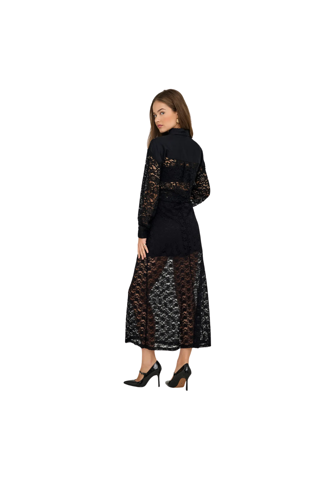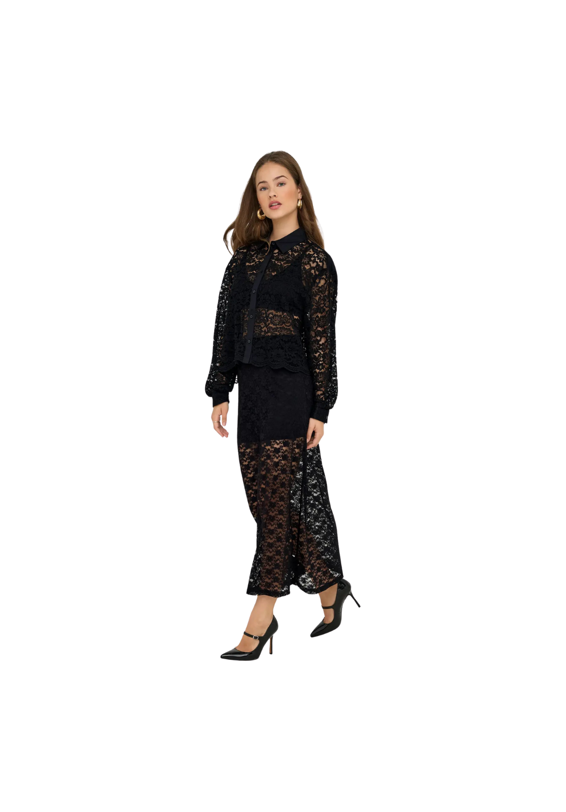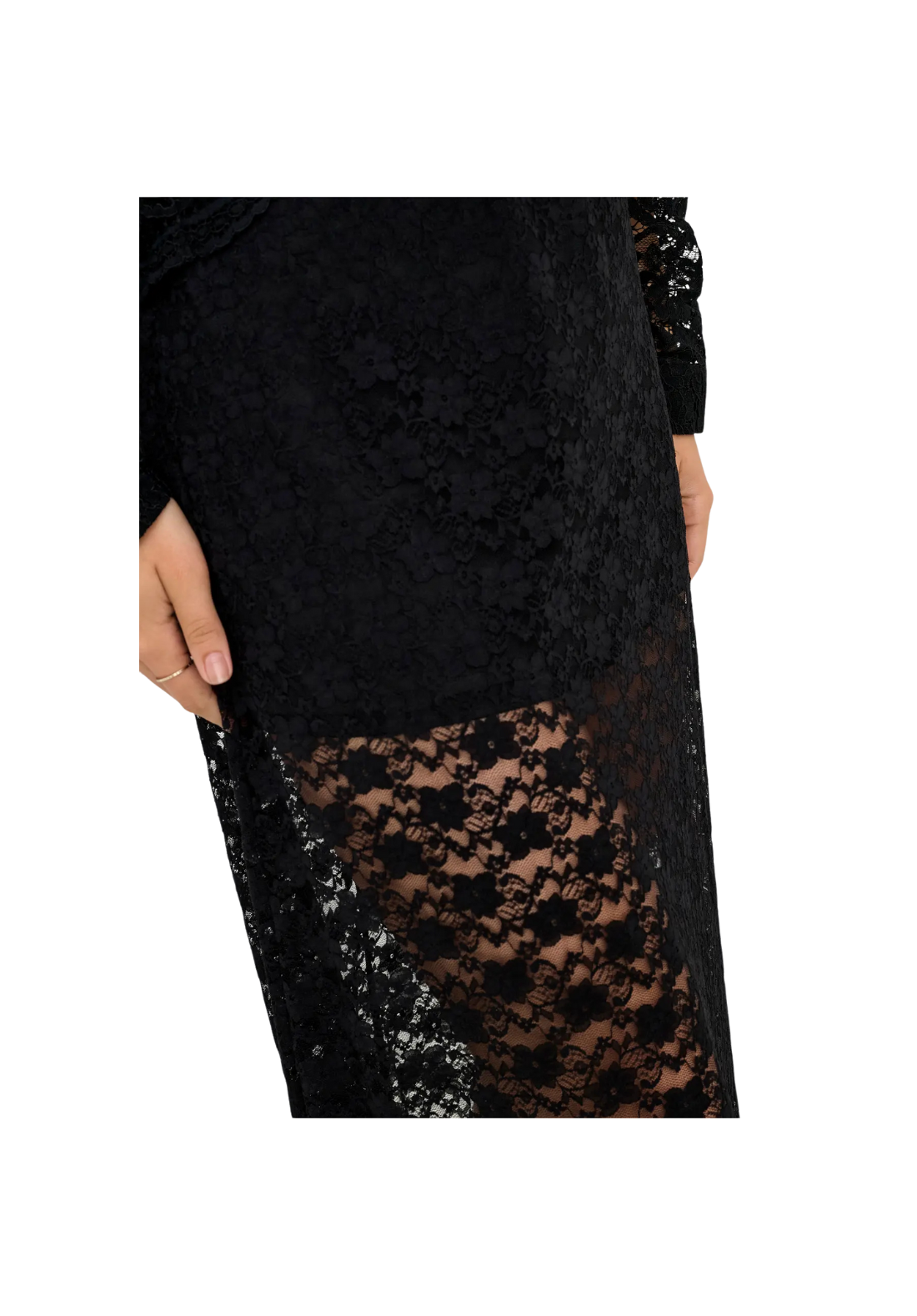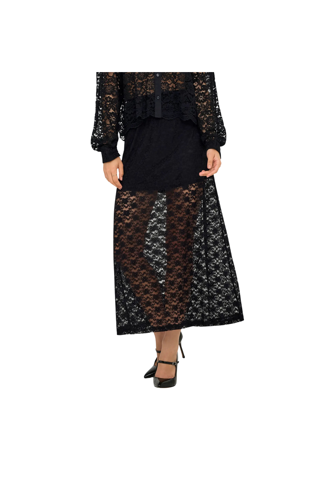 Falda larga hasta los tobillos, con detalle en encaje y cinturilla elástica.