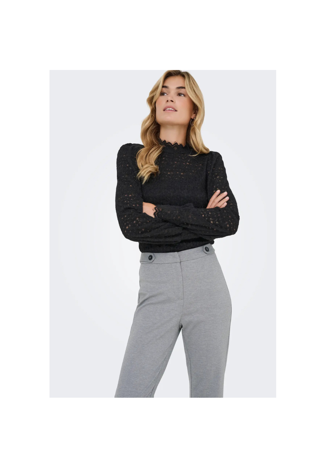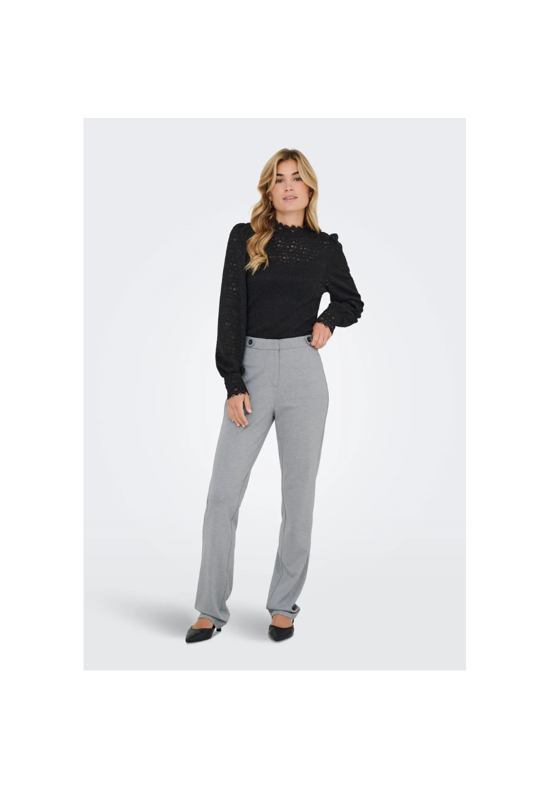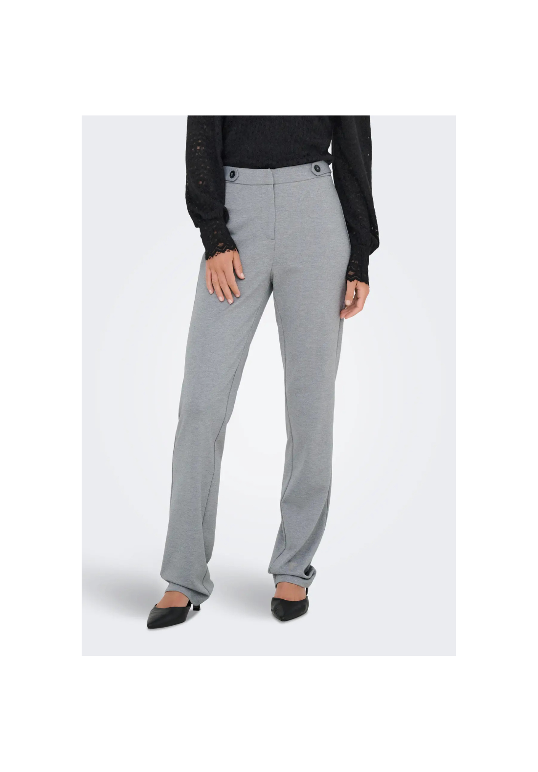 Pantalones de cintura alta, con cierre de botón y cremallera.