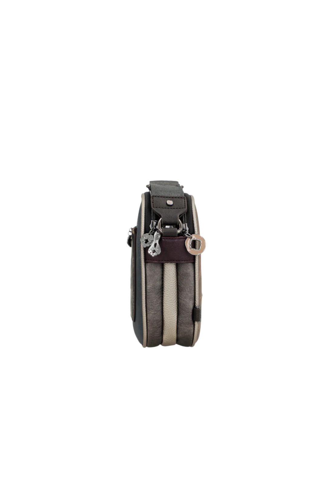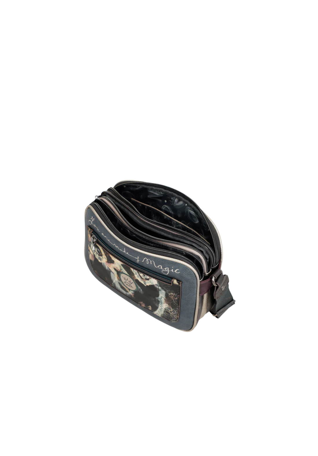 Tiene varios bolsillos: 3 compartimentos, 1 bolsillo trasero, int. 1 móvil y 1 crema.