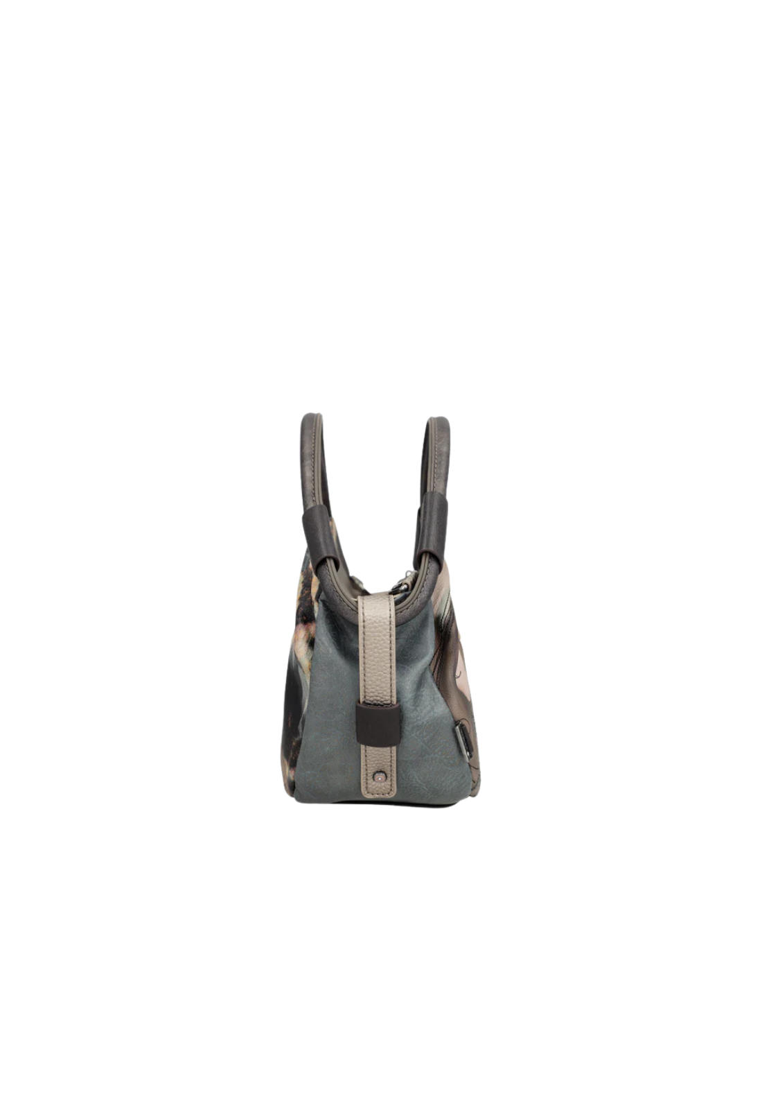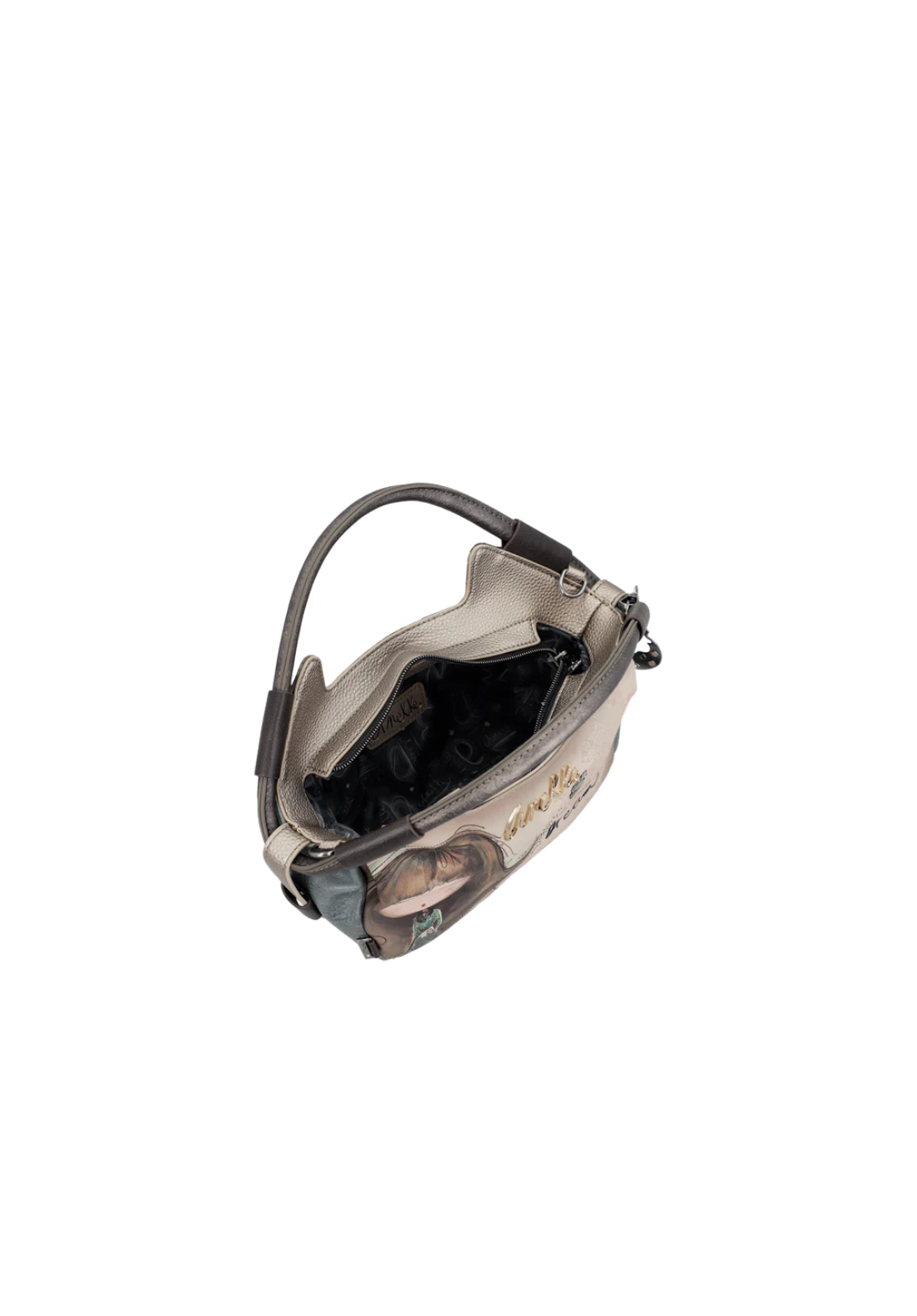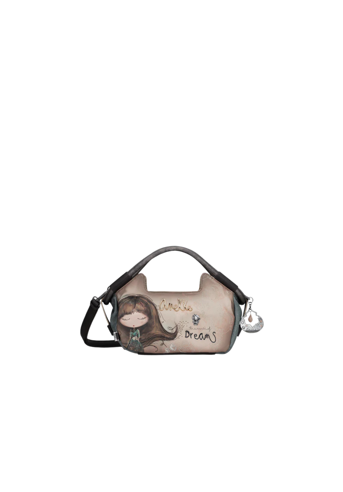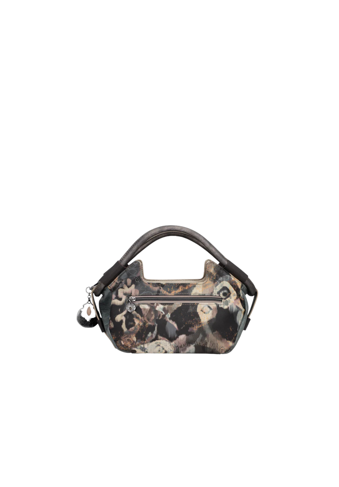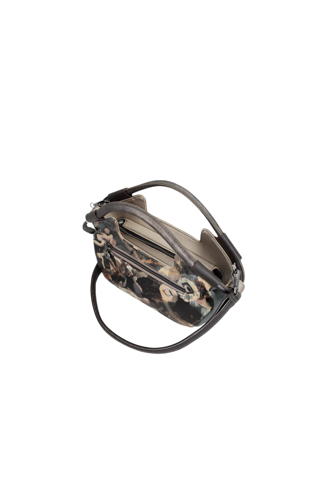Bolso con cierre de cremallera y dos asas, una de mano y otra tipo bandolera.