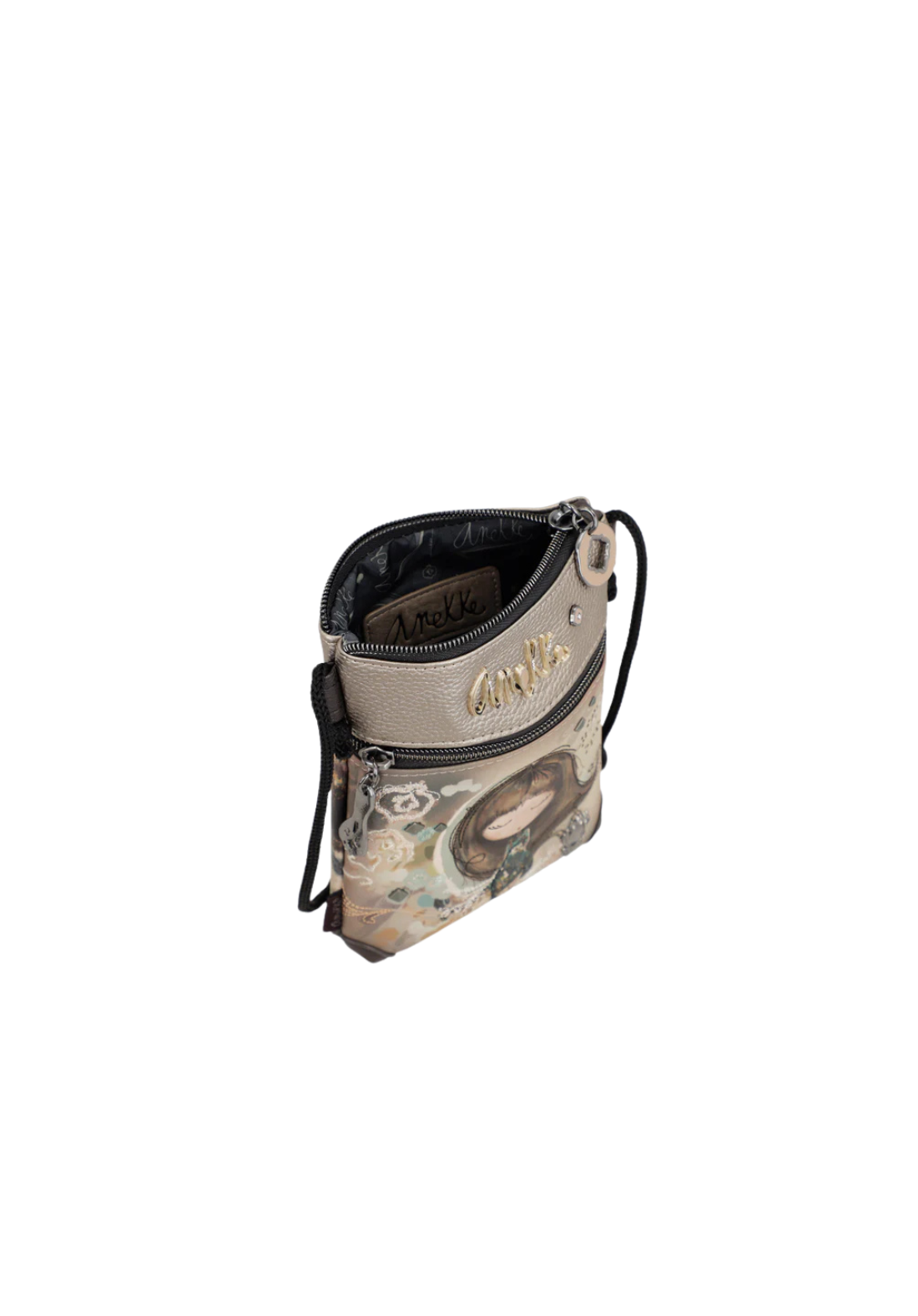 Bolso con cierre de cremallera y asa tipo bandolera. Tiene 1 bolsillo delantero.