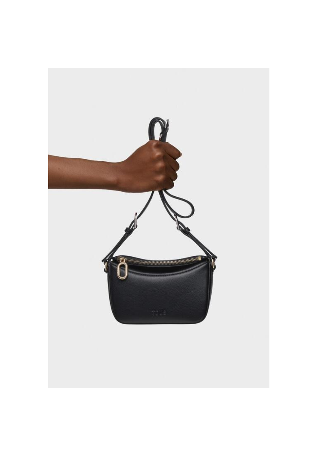 Bolso bandolera pequeño TOUS City de poliuretano con cierre magnético y asa bandolera ajustable y desmontable. Tiene un bolsillo exterior con cremallera. Medidas (alto x ancho x fondo): 12 x 20 x 9 cm.