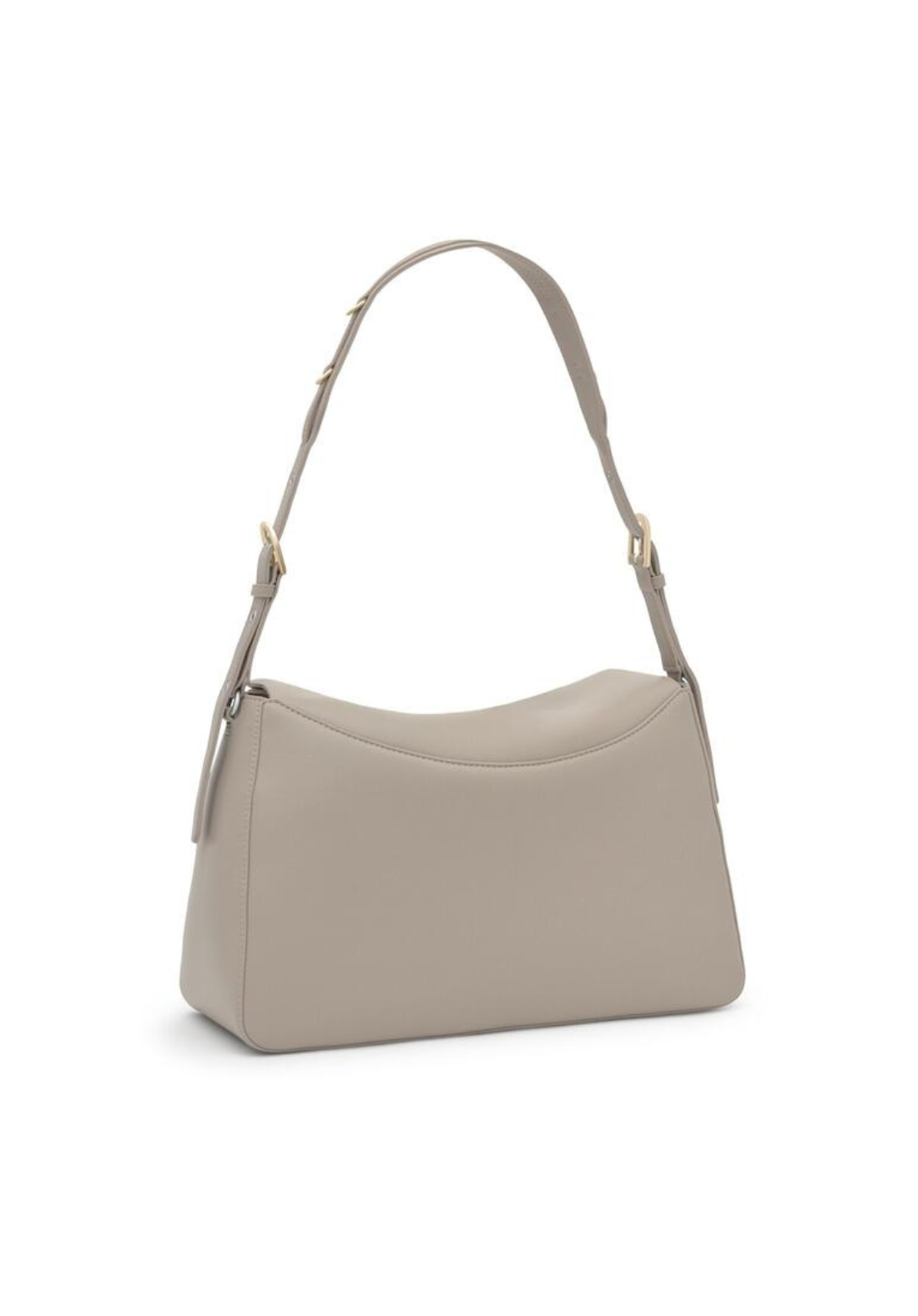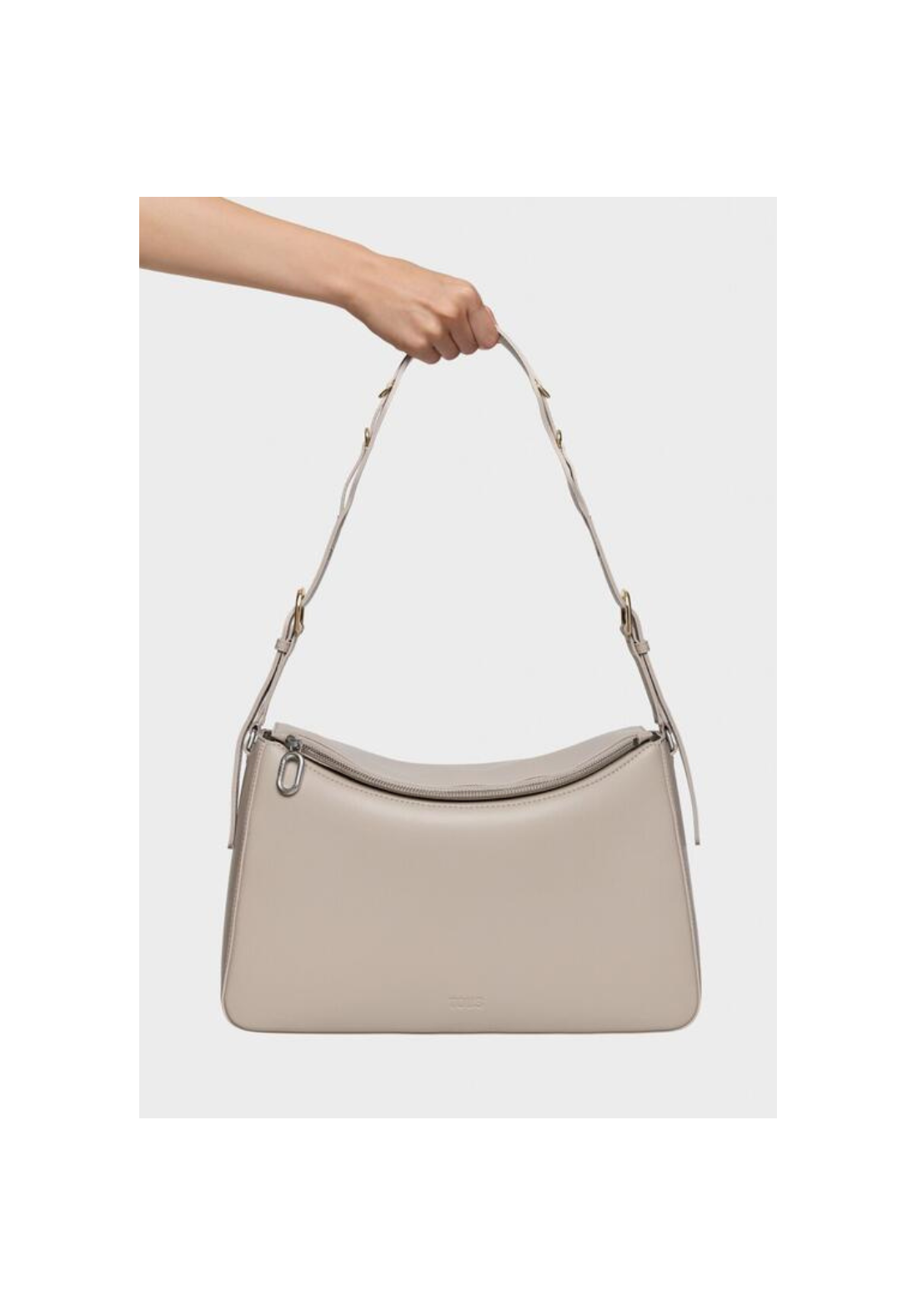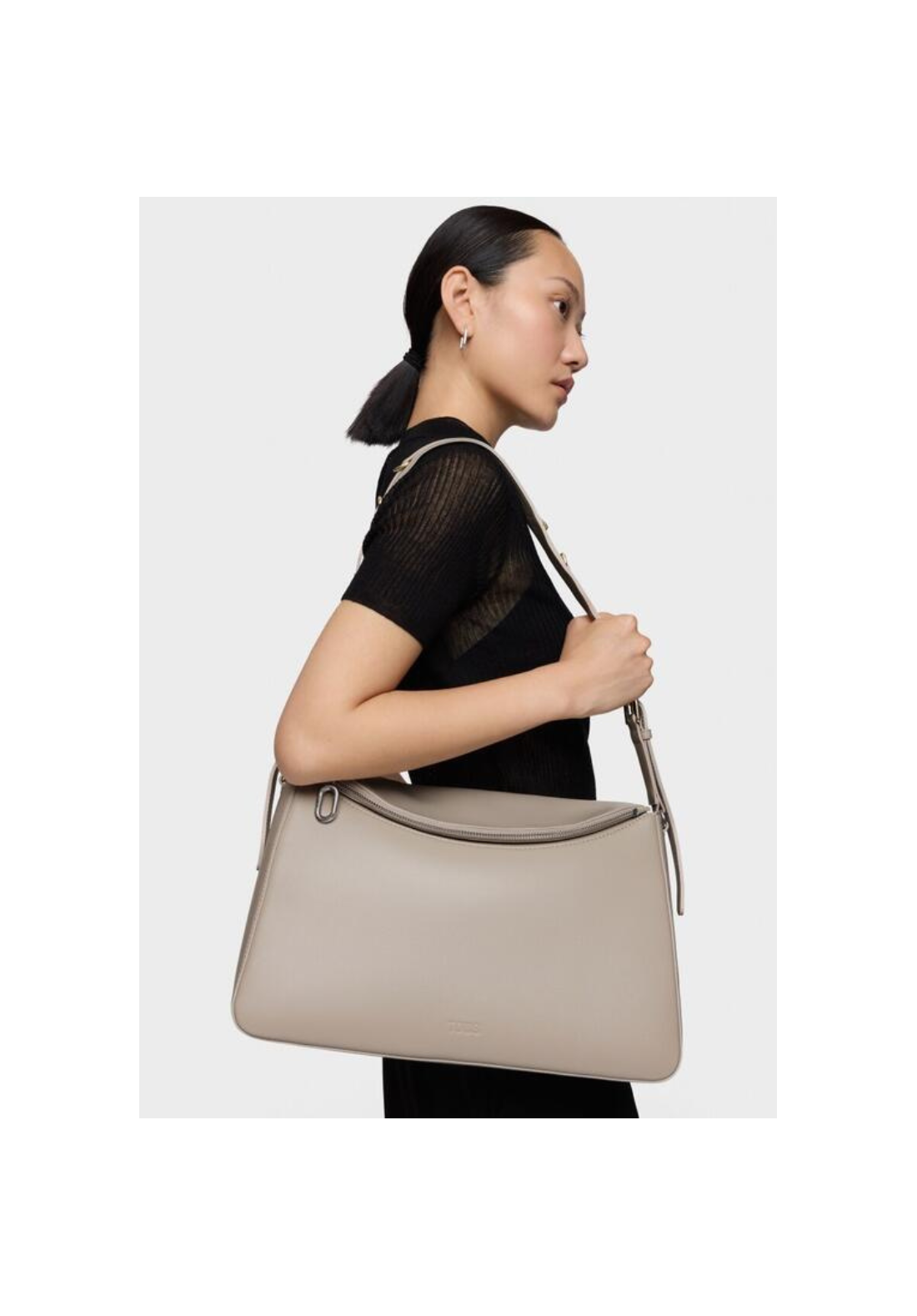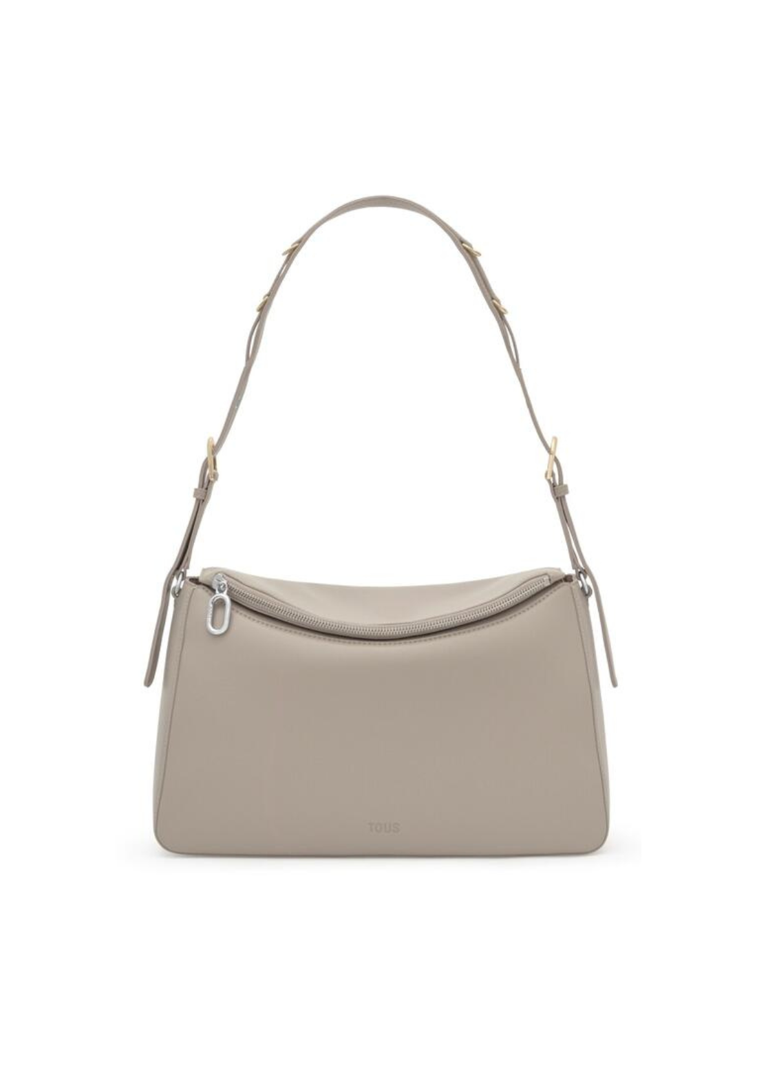 Bolso bandolera grande TOUS CIty de poliuretano con cierre de botón magnético. Tiene un bolsillo interior y otro exterior con cremallera. La asa es de hombro y ajustable.