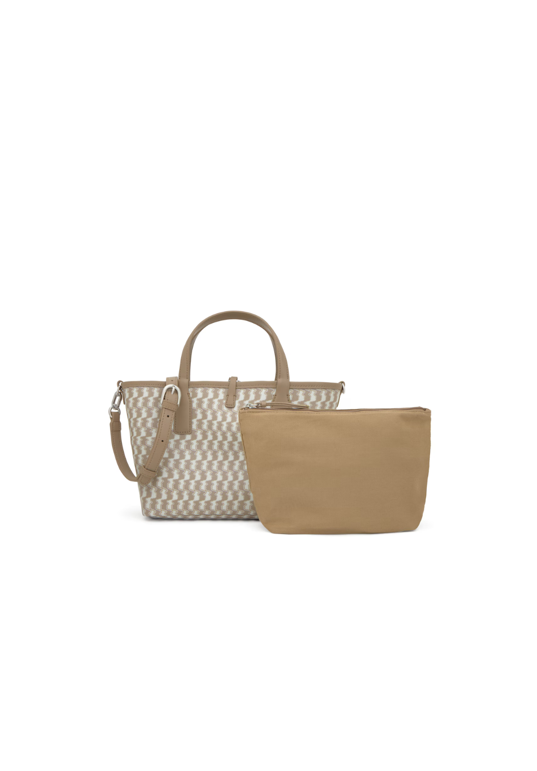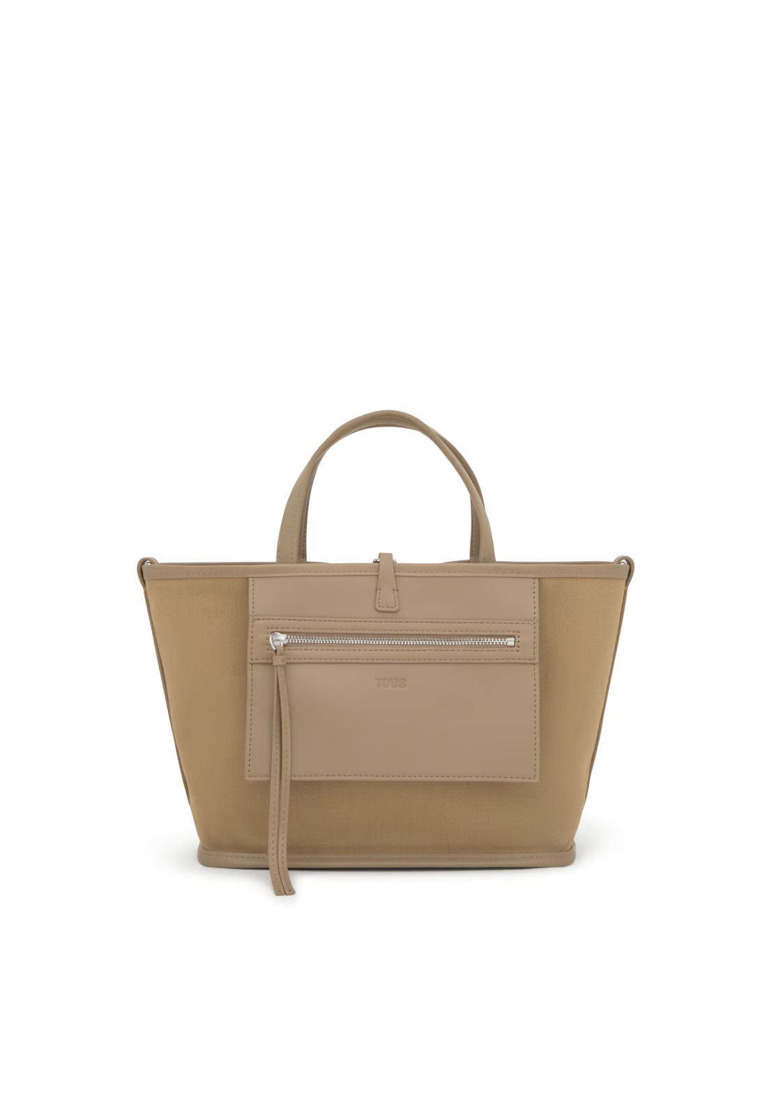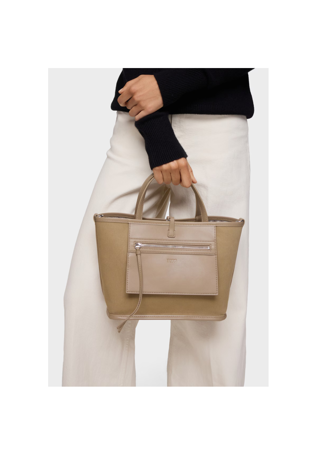 Bolso capazo mediano reversible TOUS Double Way Bear de algodón y poliéster reciclado con detalles de poliuretano y con diseño reversible. Cierre de hebilla. Asas fijas de mano y asa bandolera ajustable y desmontable. Bolsillo interior y exterior con cremallera. En el interior contiene un compartimento desmontable con cierre de cremallera.