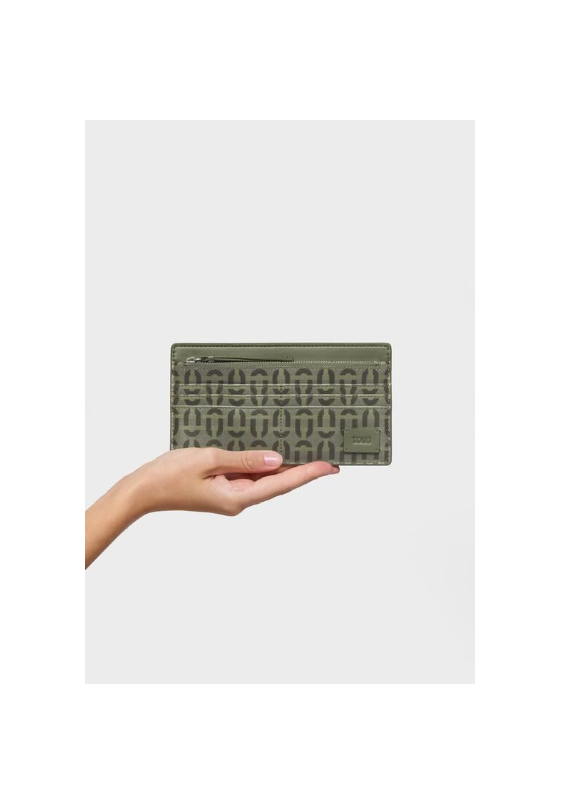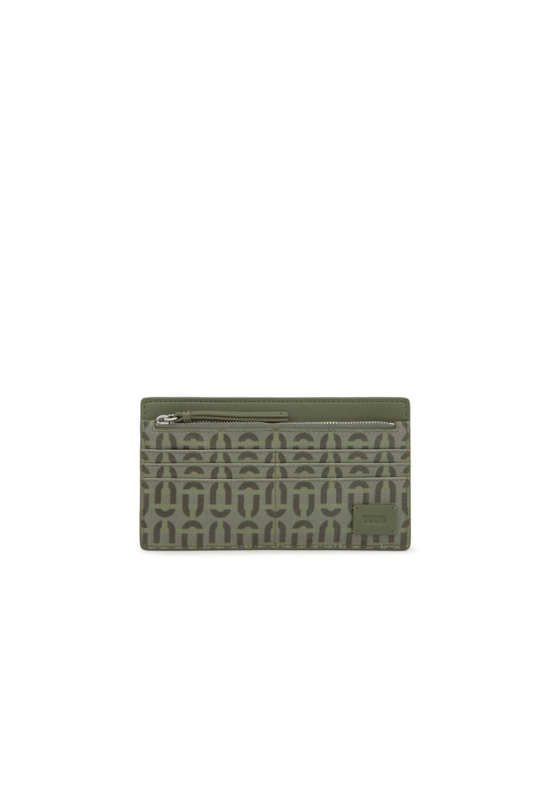 Billetera grande TOUS Double Way de algodón y poliéster reciclado con cierre de cremallera. Contiene seis ranuras para tarjetas y compartimento abierto para billetes. Medidas (alto x ancho x fondo): 10,5 x 19 x 0,4 cm.