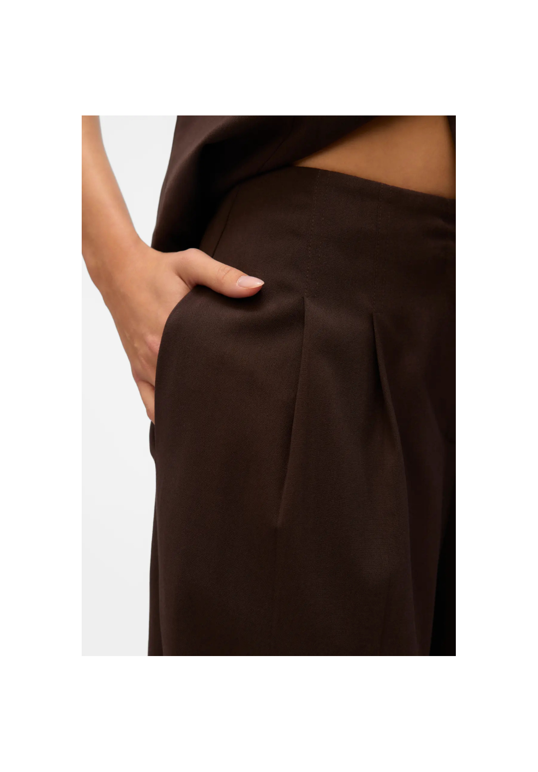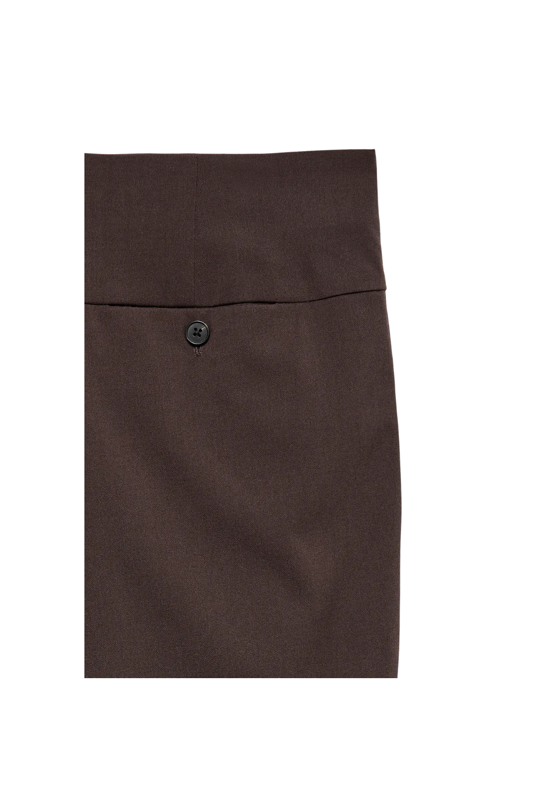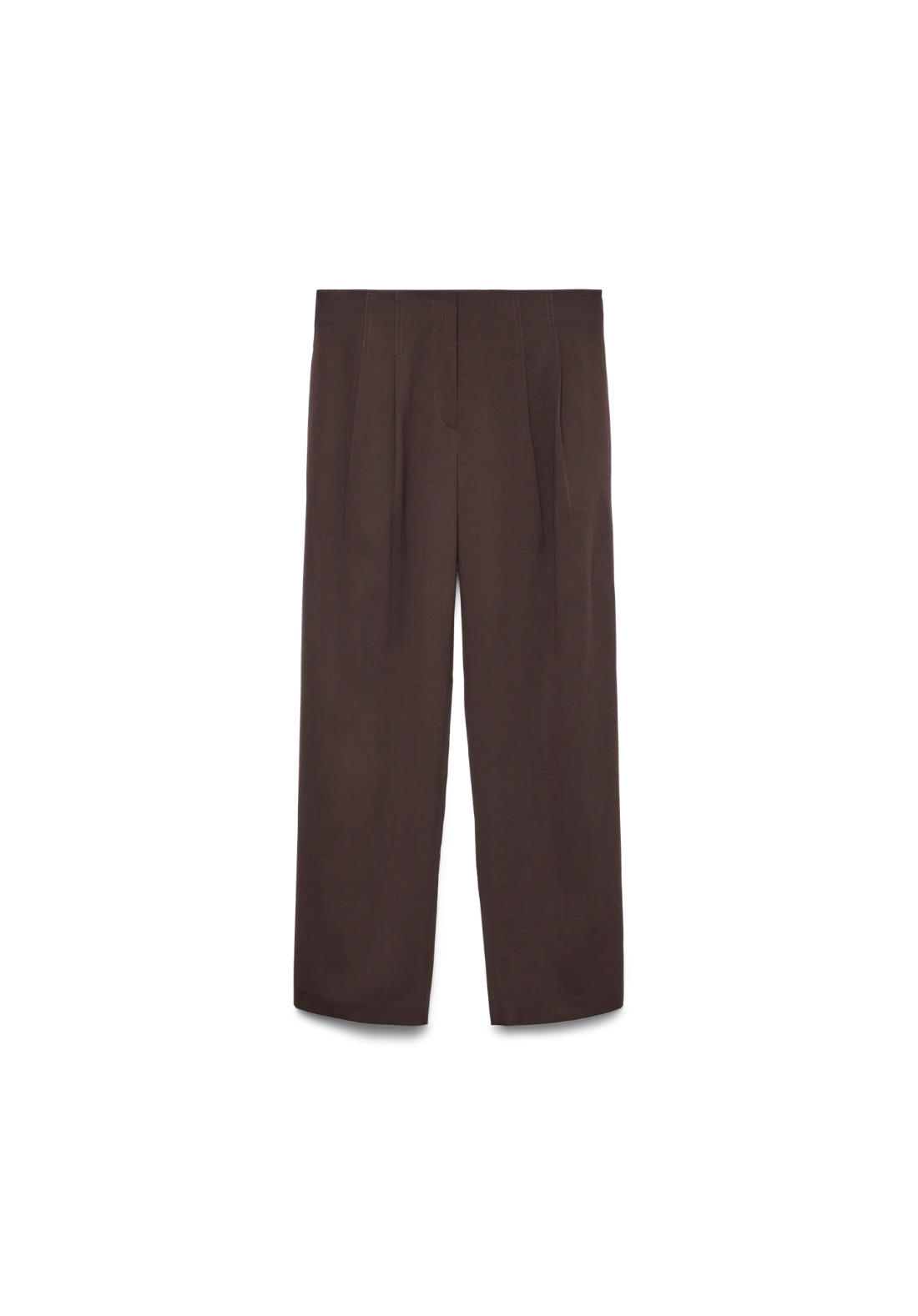 Pantalón de pinzas de cintura media, con cierre de cremallera y corchetes.