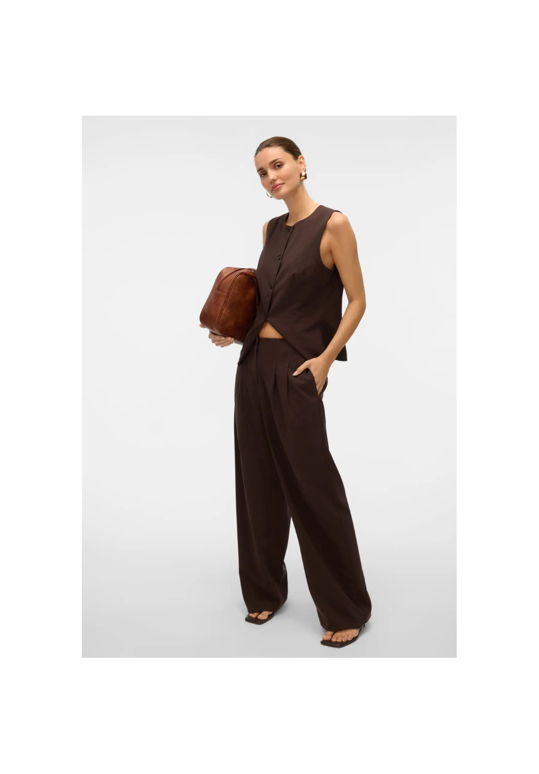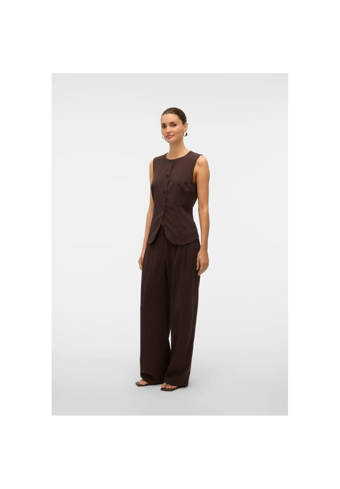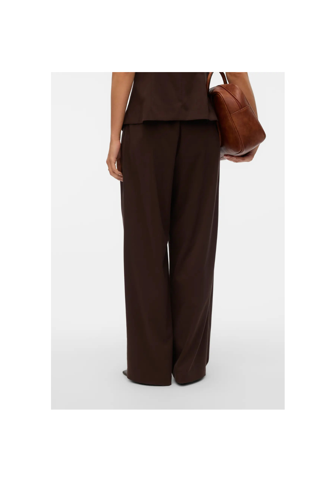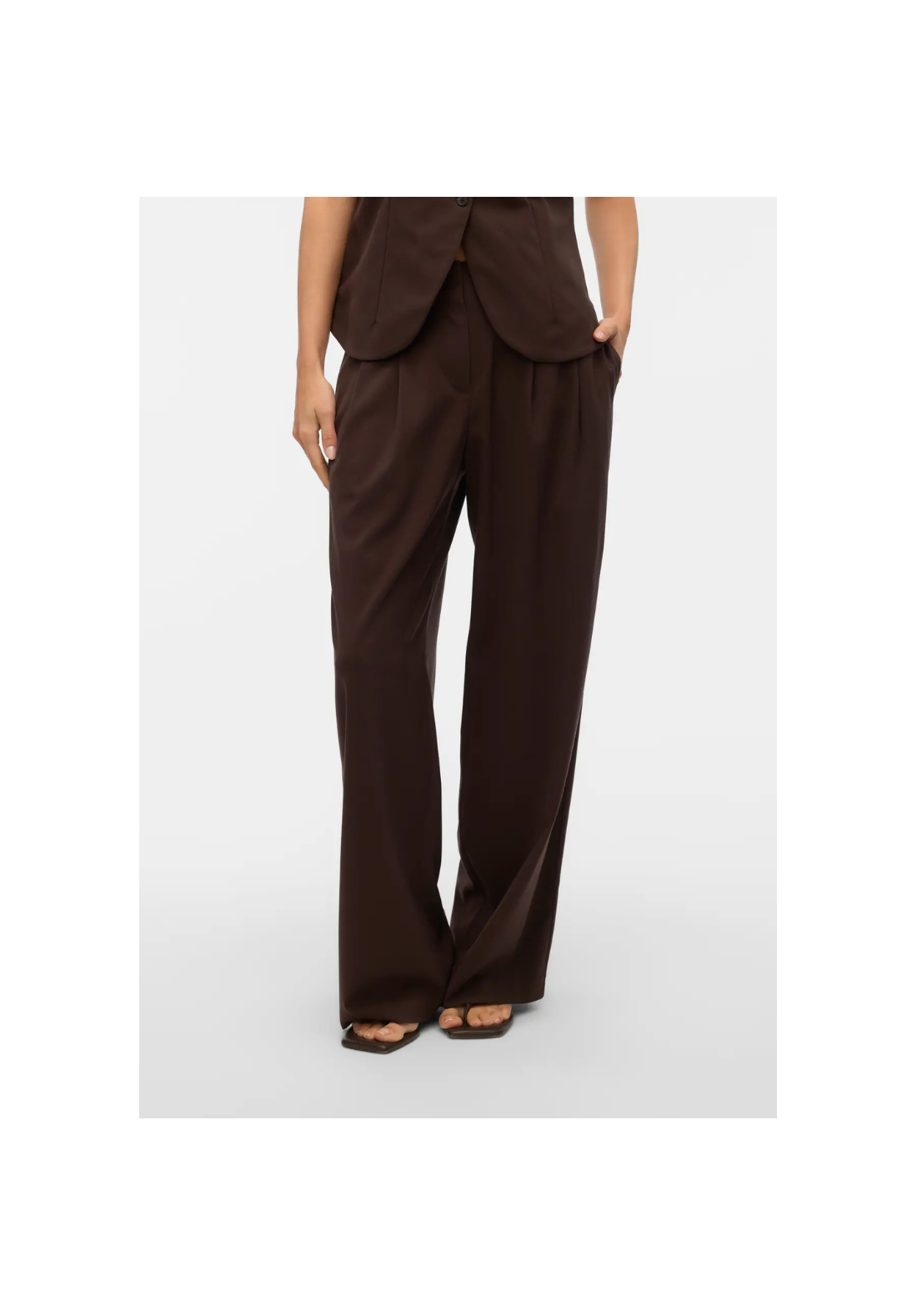 Pantalón de pinzas de cintura media, con cierre de cremallera y corchetes.