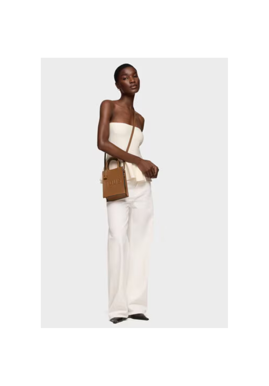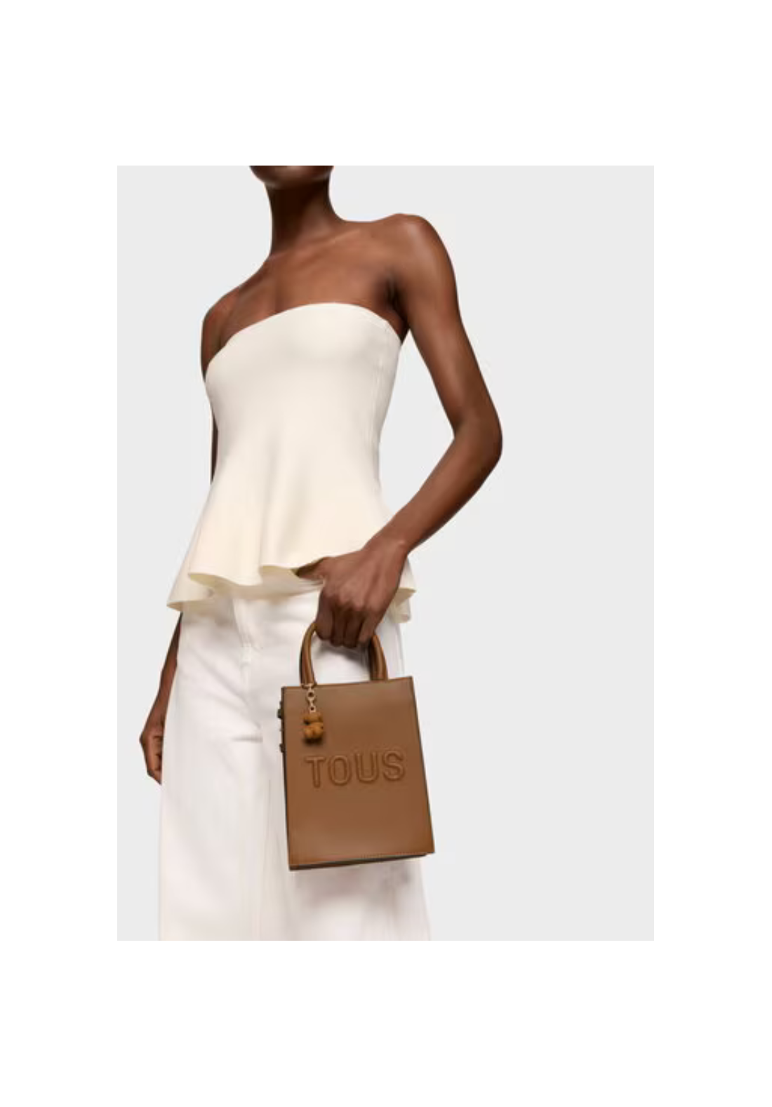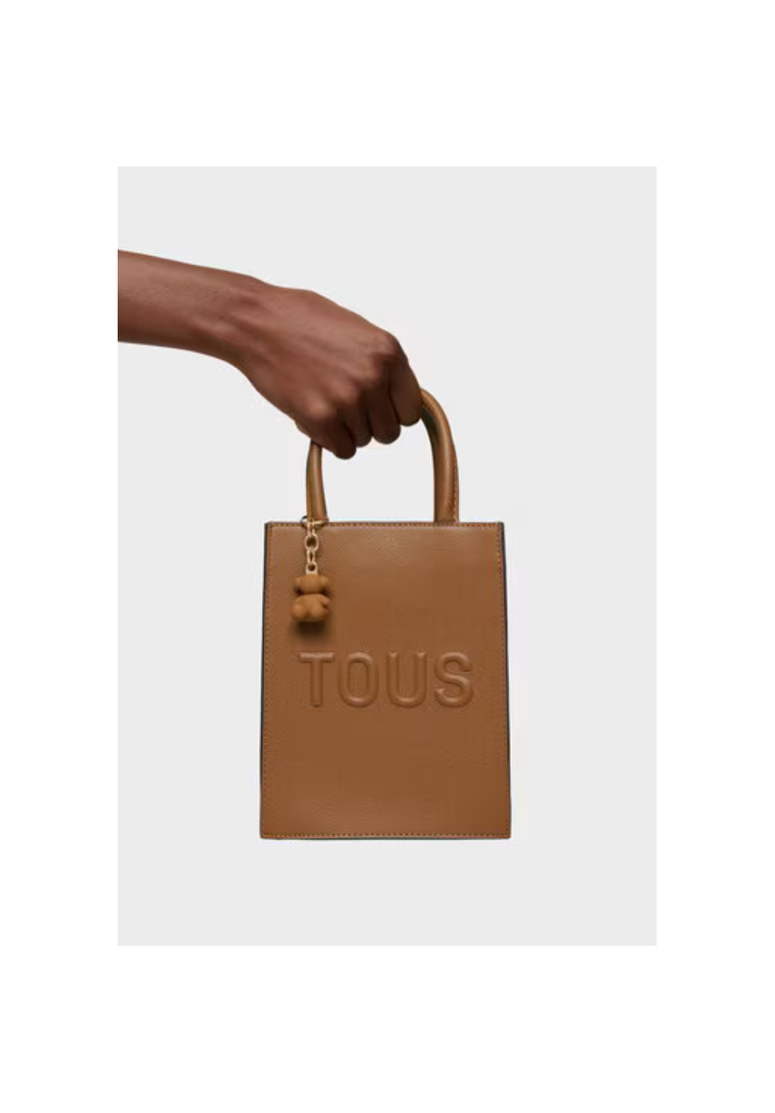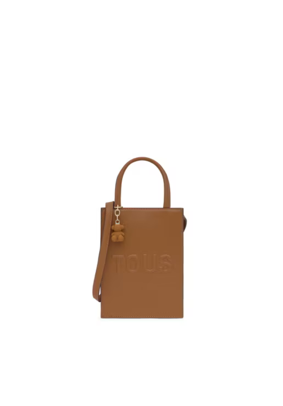 Minibolso Pop TOUS Brenda de poliuretano con cierre con botón magnético. Tiene asas fijas de mano y asa bandolera ajustable y desmontable. Incorpora un bonito detalle de oso colgante.