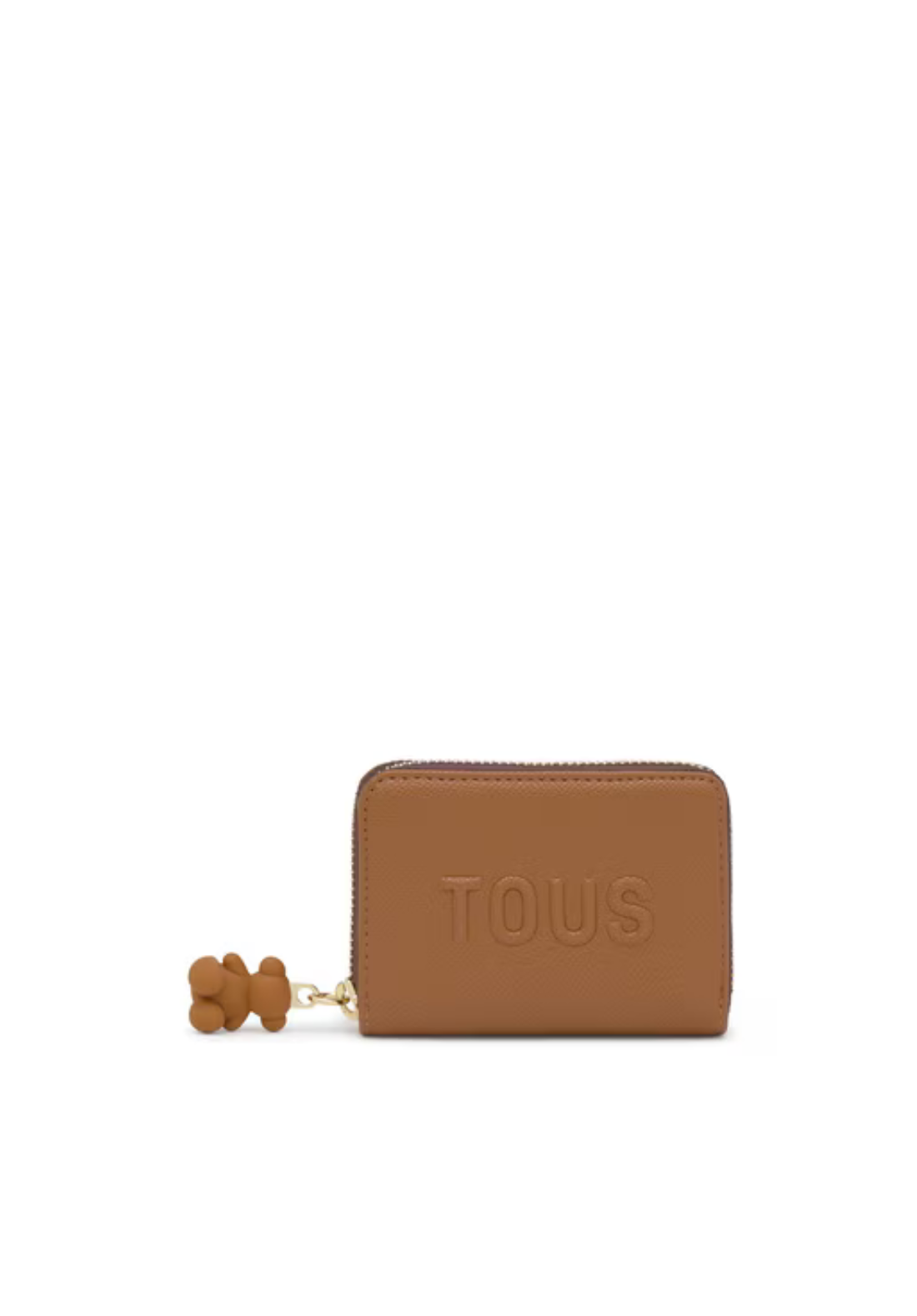 Monedero TOUS Brenda de poliuretano. En el interior cuenta con tres compartimentos abiertos para monedas y dos ranuras para tarjetas. Cierre de cremallera.