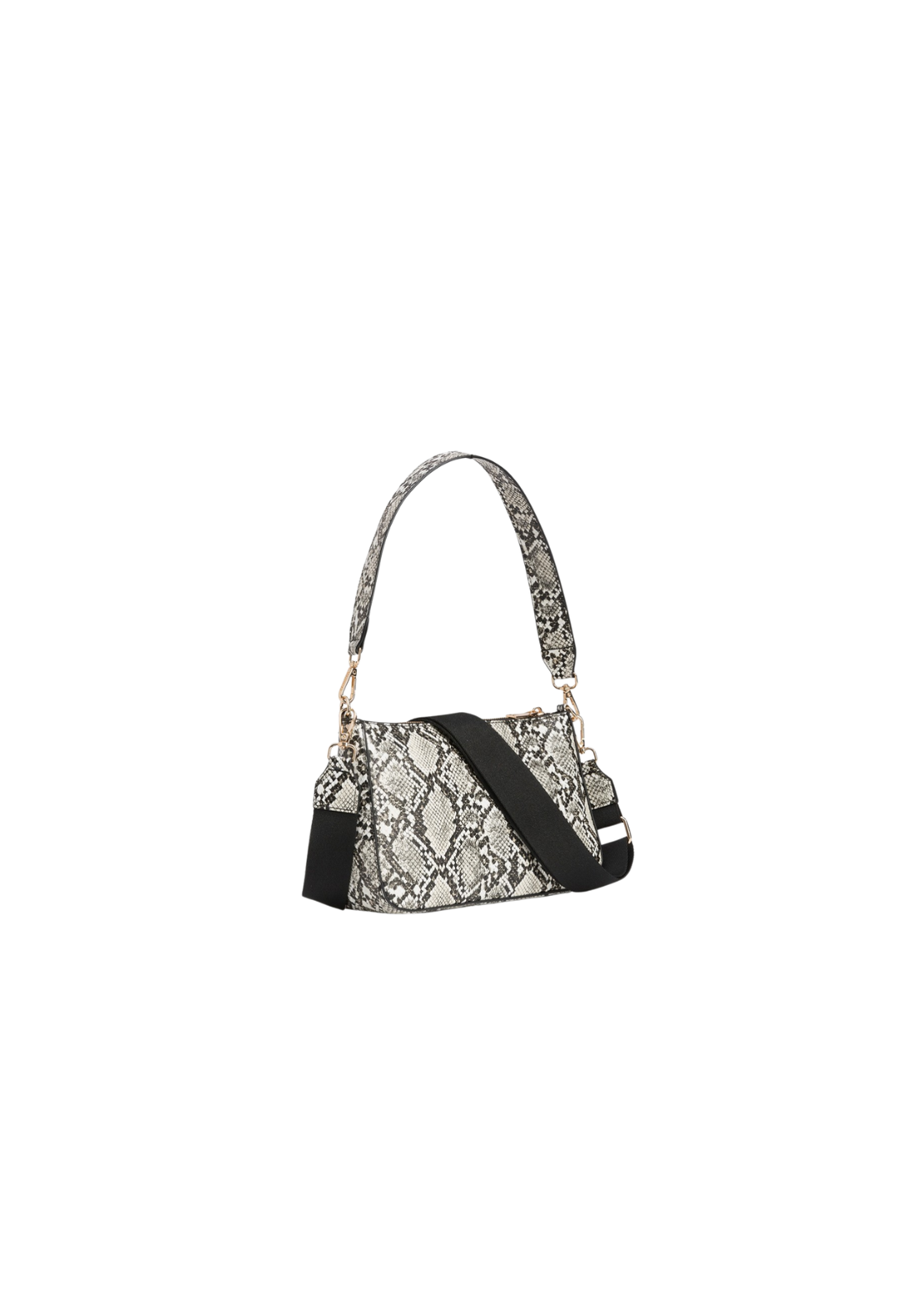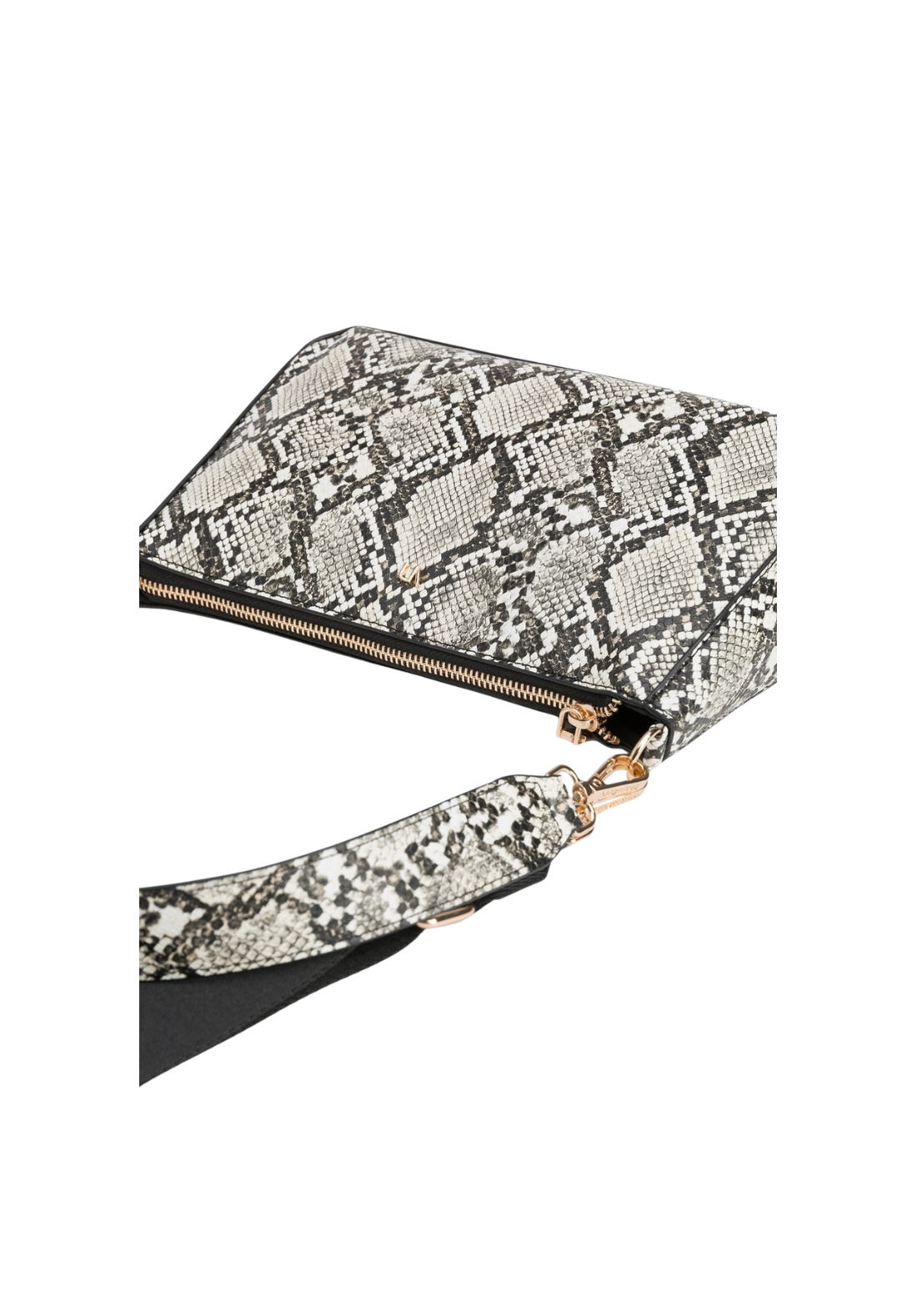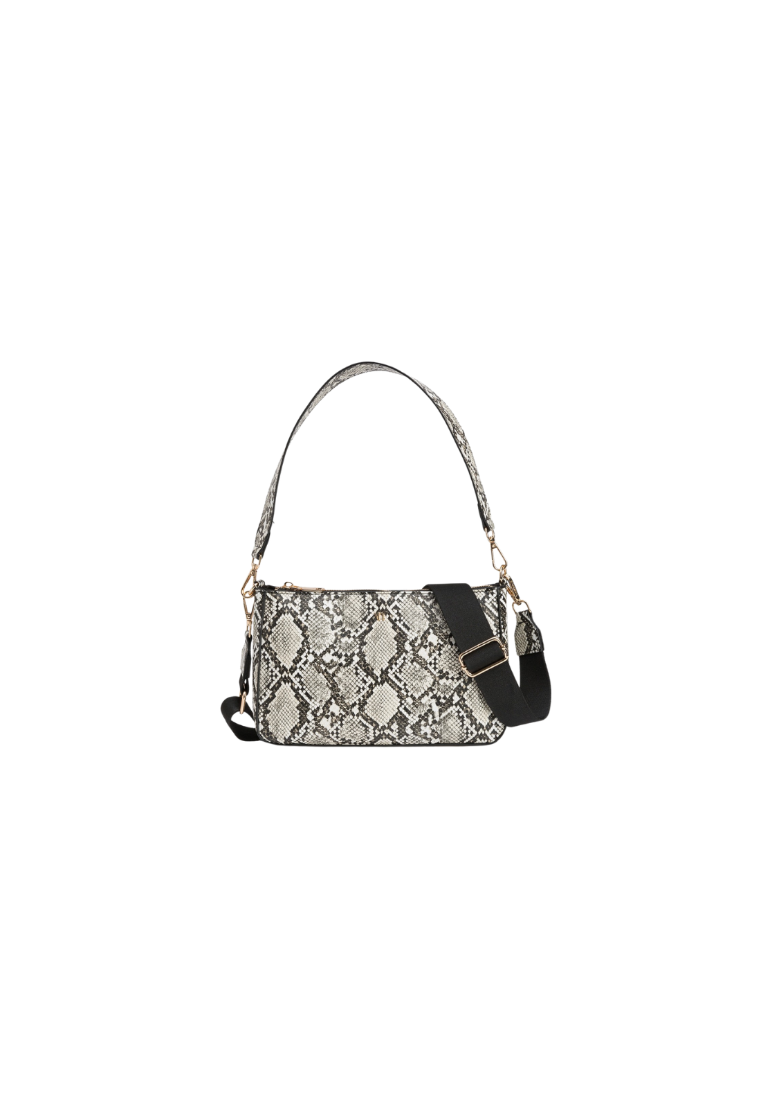 Bolso bandolera en efecto piel de serpiente, con cierre superior de cremallera, asa de hombro fija y asa bandolera ajustable y removible. Bolsillo interior con cierre de cremallera. Tamaño pequeño.