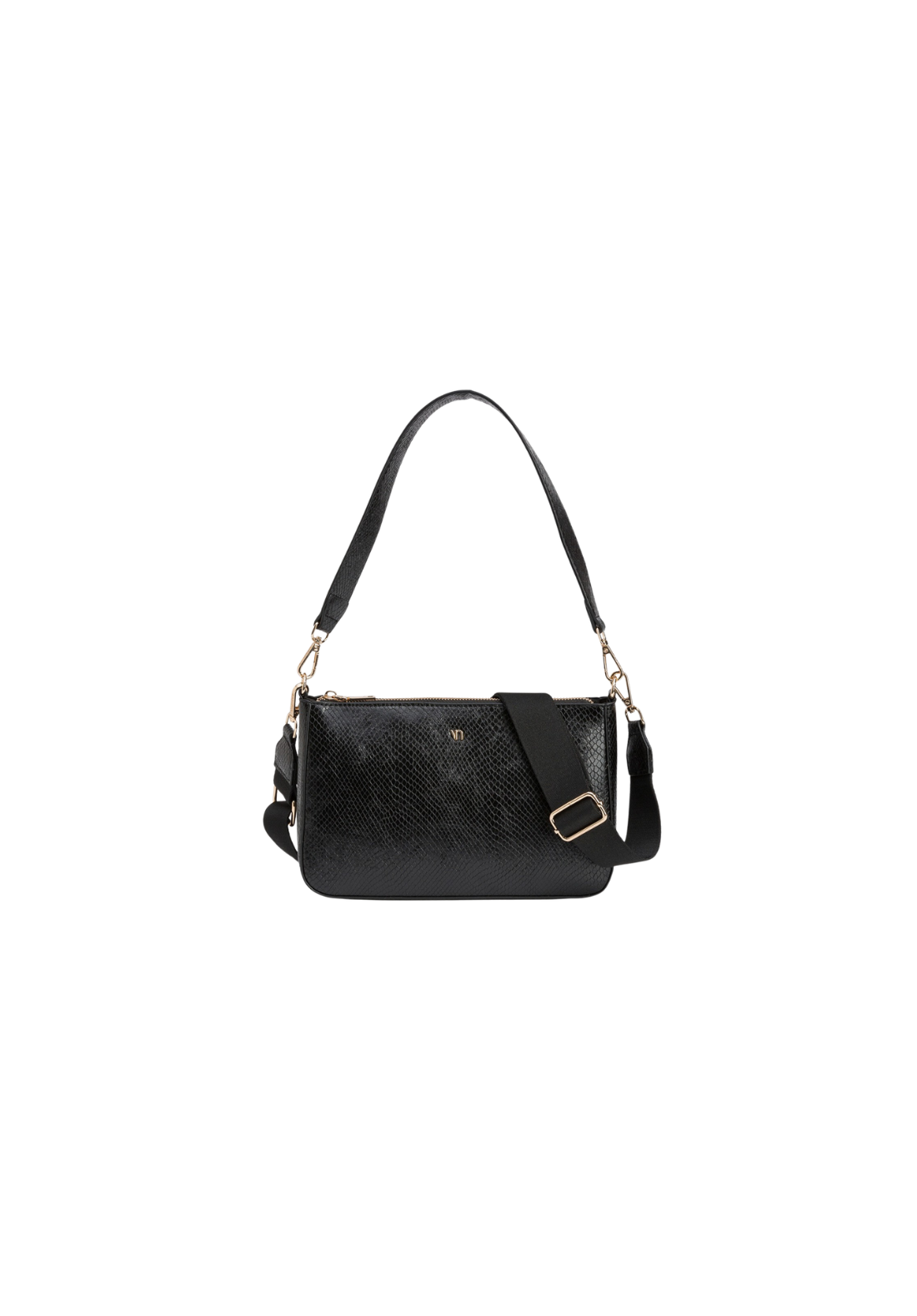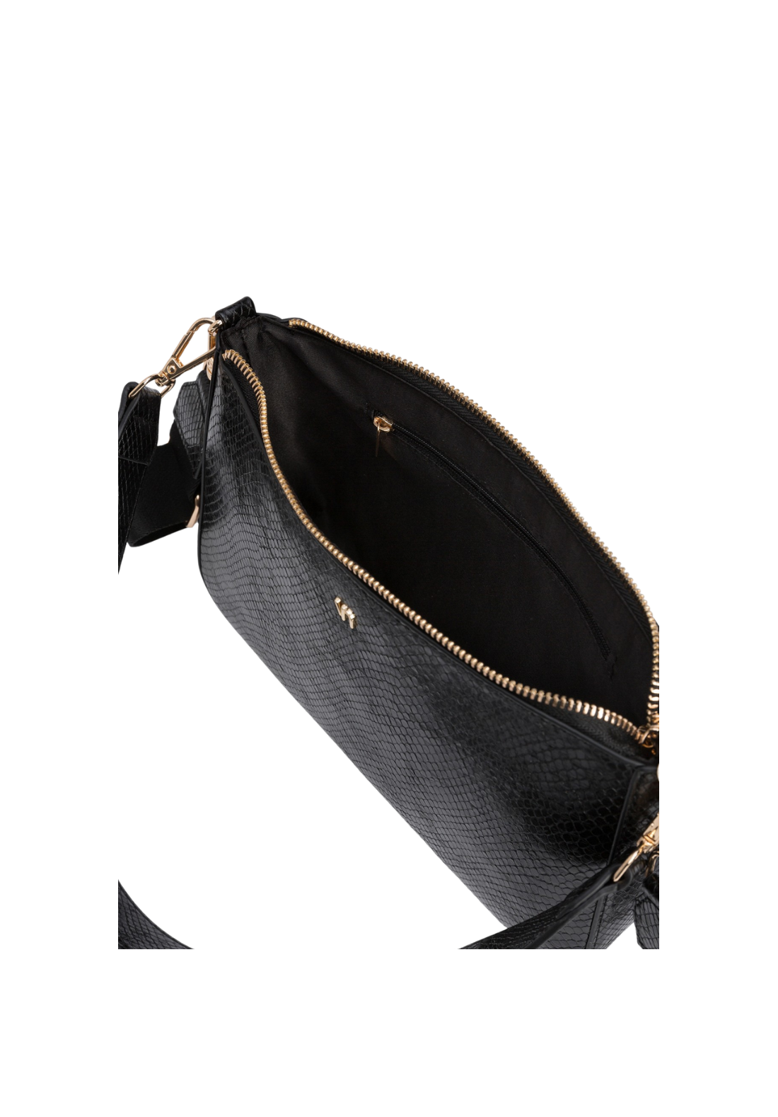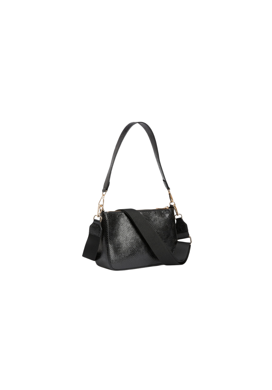 Bolso bandolera en efecto piel de serpiente, con cierre superior de cremallera, asa de hombro fija y asa bandolera ajustable y removible. Bolsillo interior con cierre de cremallera. Tamaño pequeño.