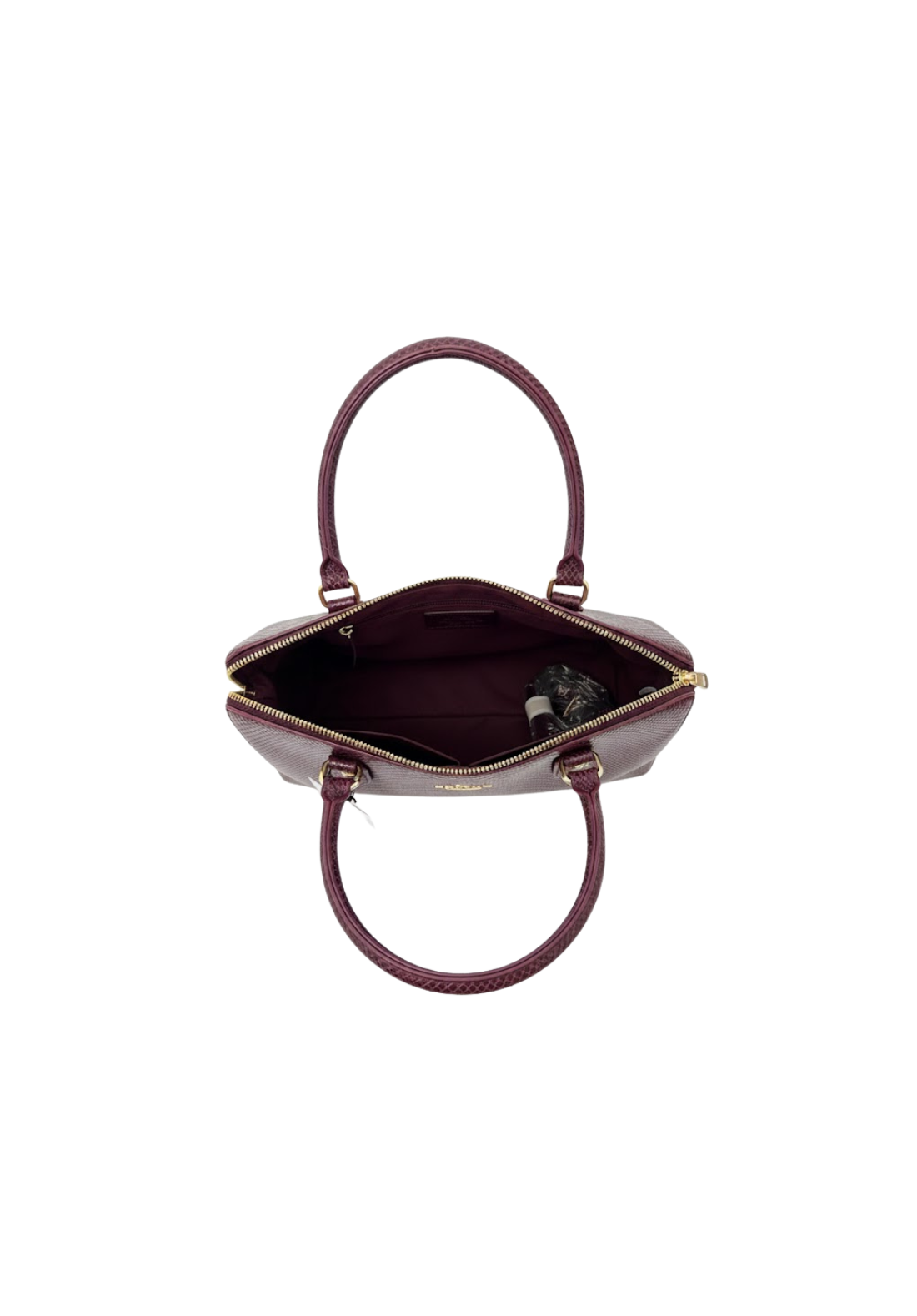 Bolso efecto serpiente con cierre de cremallera superior y asas de hombro. Correa ajustable y extraíble. Bolsillo interior con cierre de cremallera.