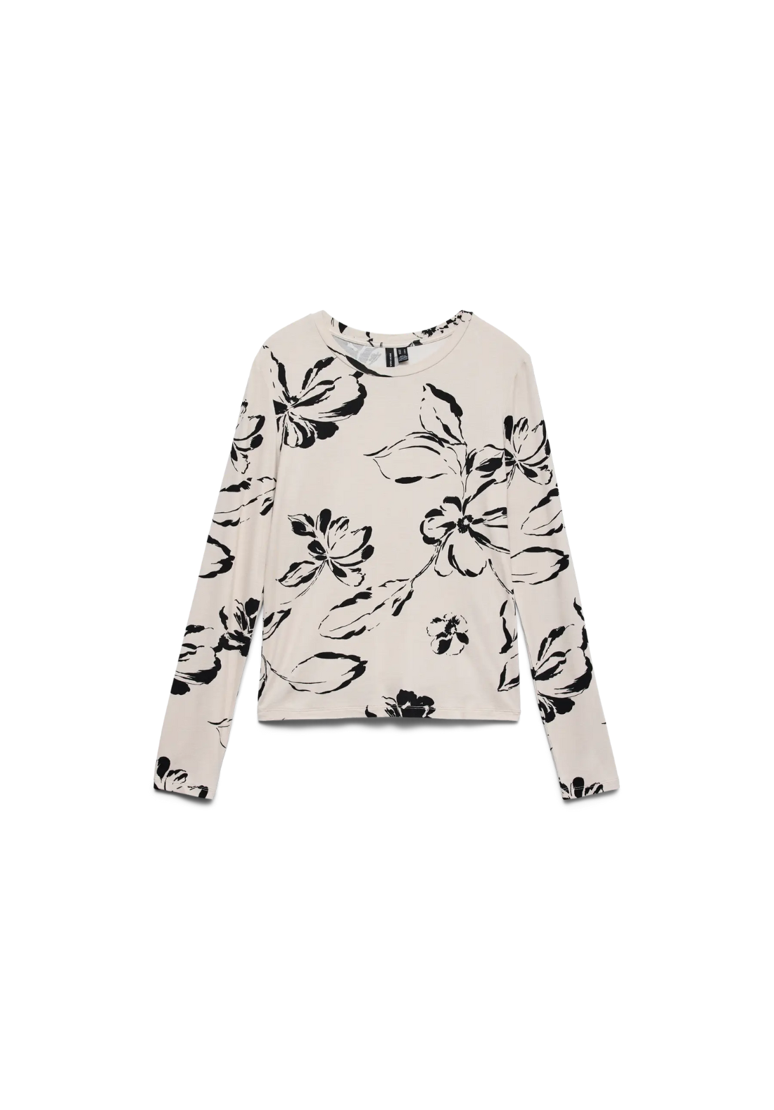 Blusa de manga larga y cuello redondo, con mangas ajustadas. Estampado repetido en toda la prenda.