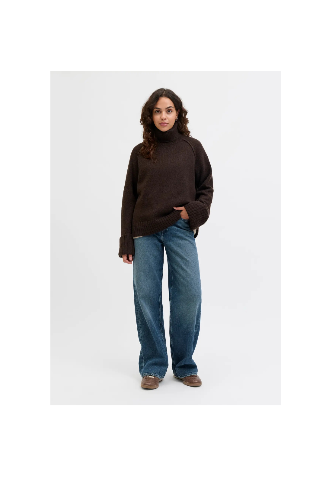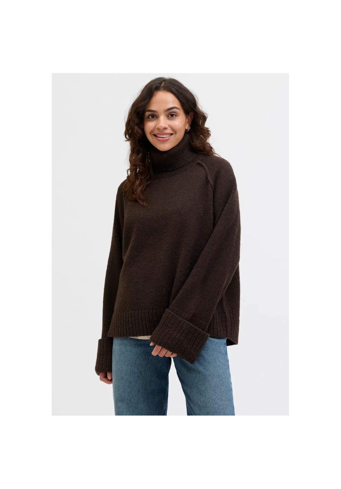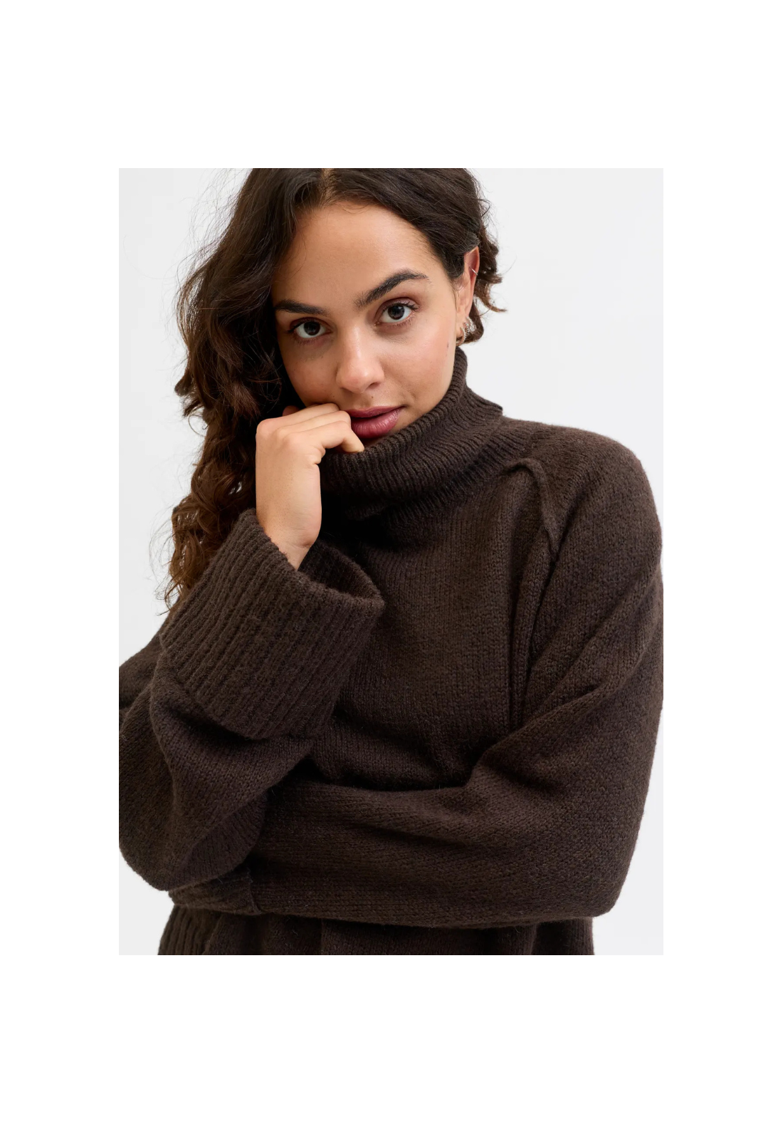 Jersey de punto, de cuello vuelto y mangas largas.