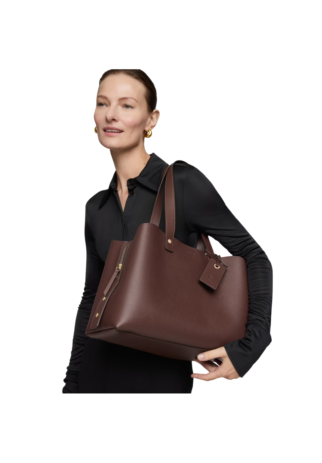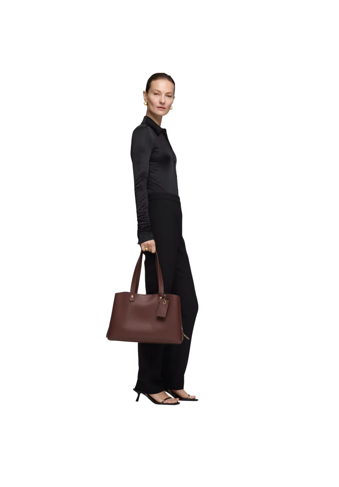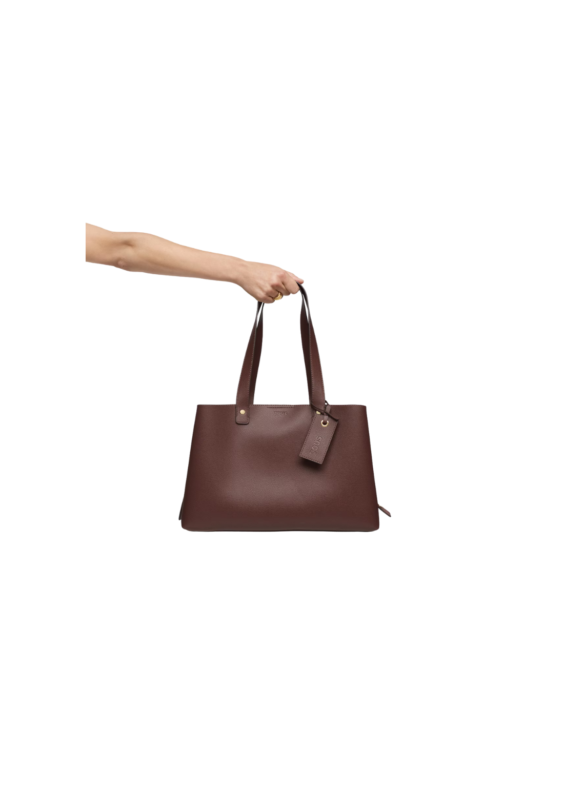 Bolso city mediano The Citybow de poliuretano con cierre con botón magnético. Bolsillo interior con cremallera. Asa fija de hombro.
