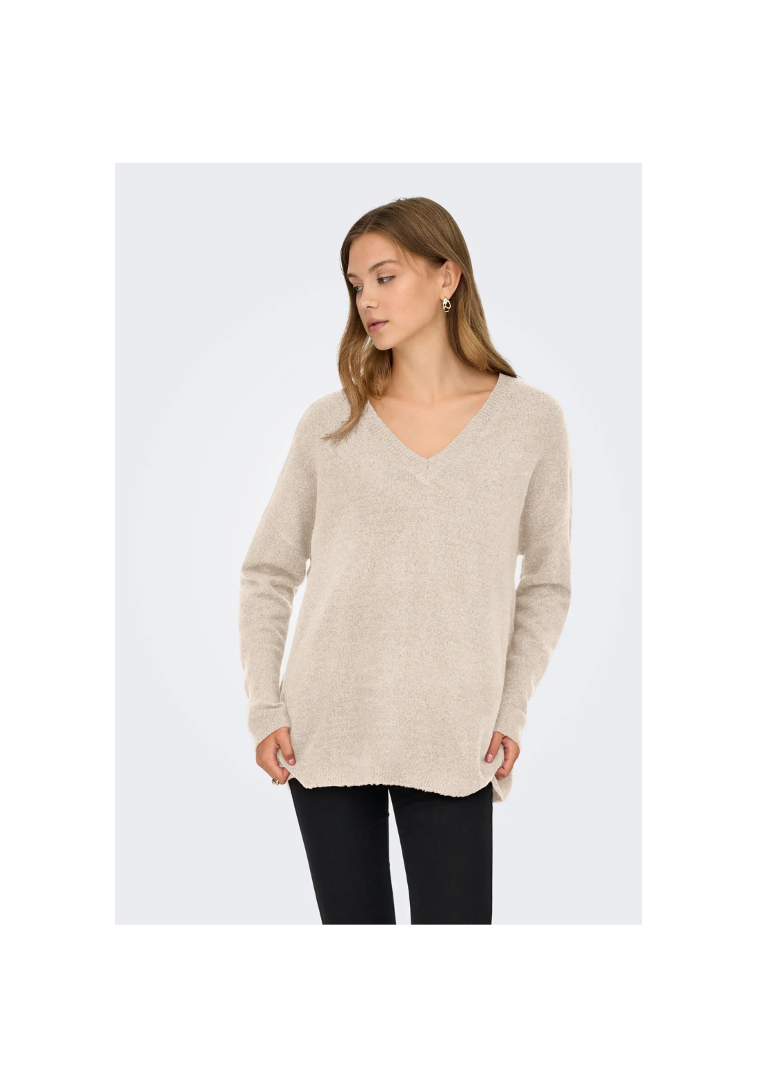 Jersey de punto, con cuello en V y hombros caídos.