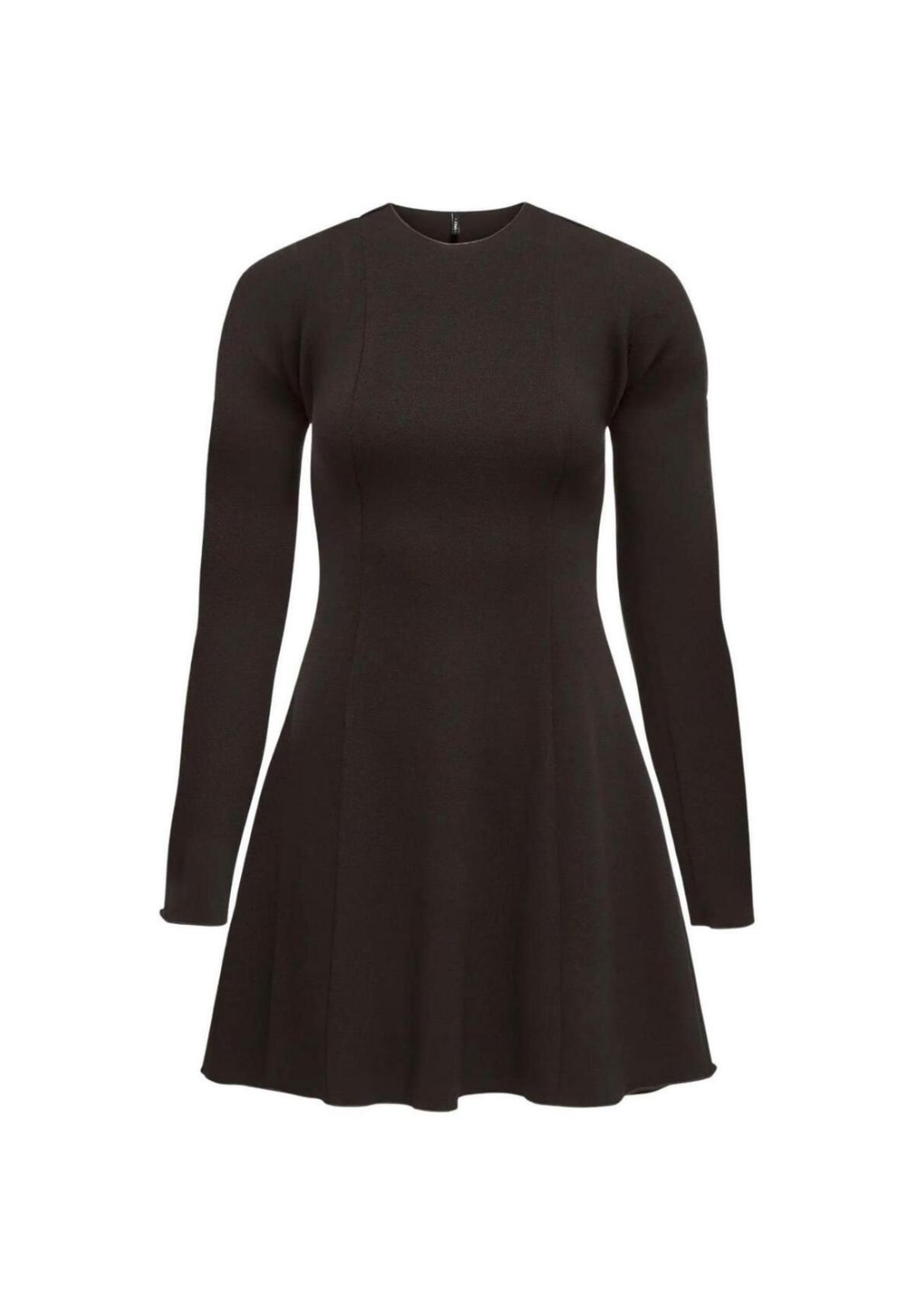 Vestido corto de manga larga y cuello redondo. Falda con vuelo.