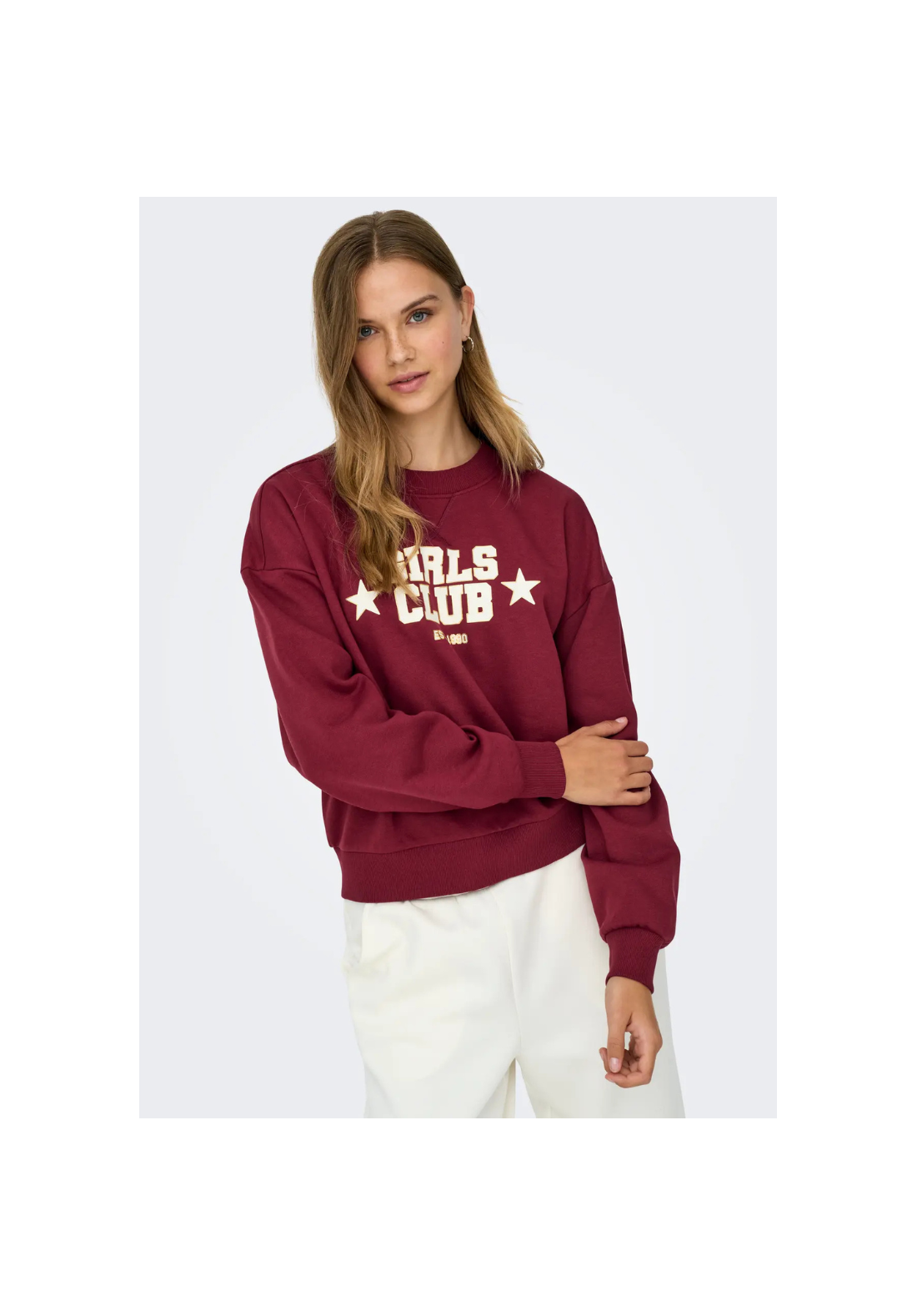 Sudadera de cuello redondo y hombros caídos. Estampa en la parte delantera del producto.