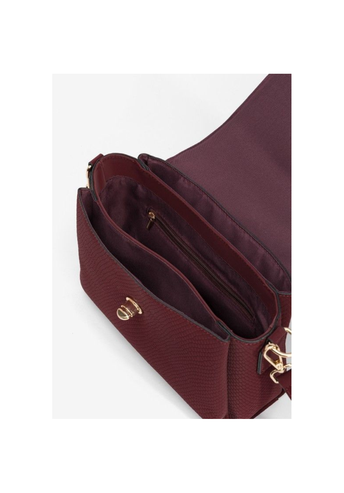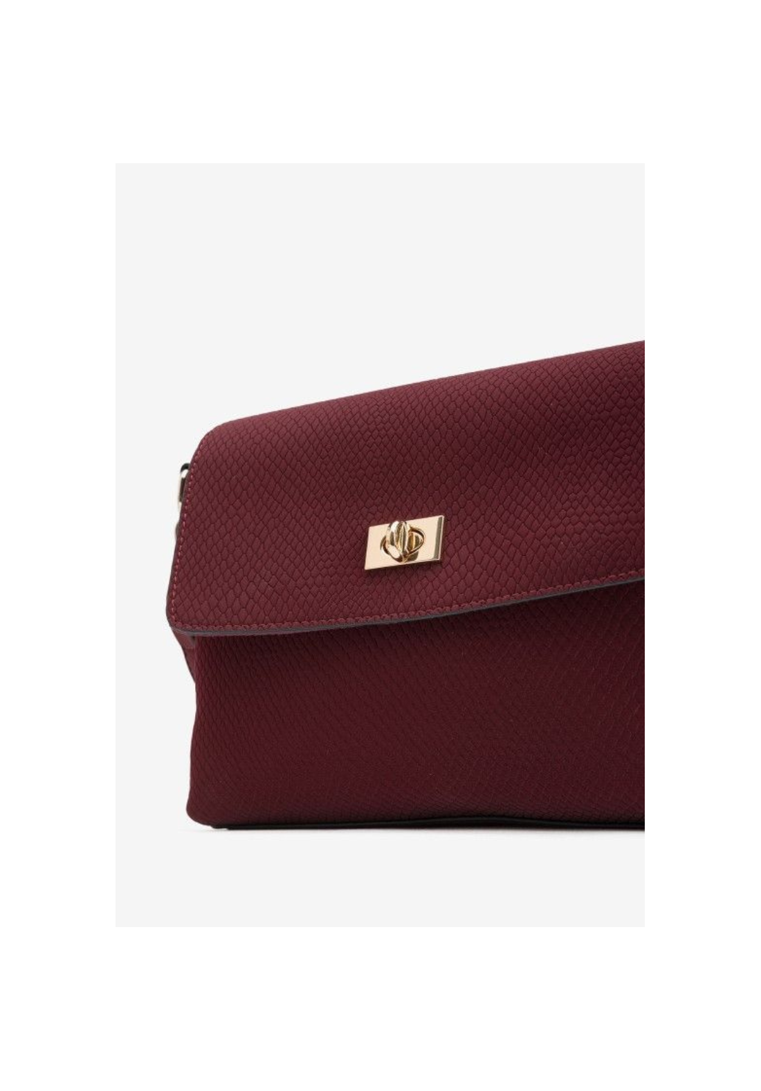 Bolso con textura, cierre metálico dorado y correa ajustable. Diseño moderno.