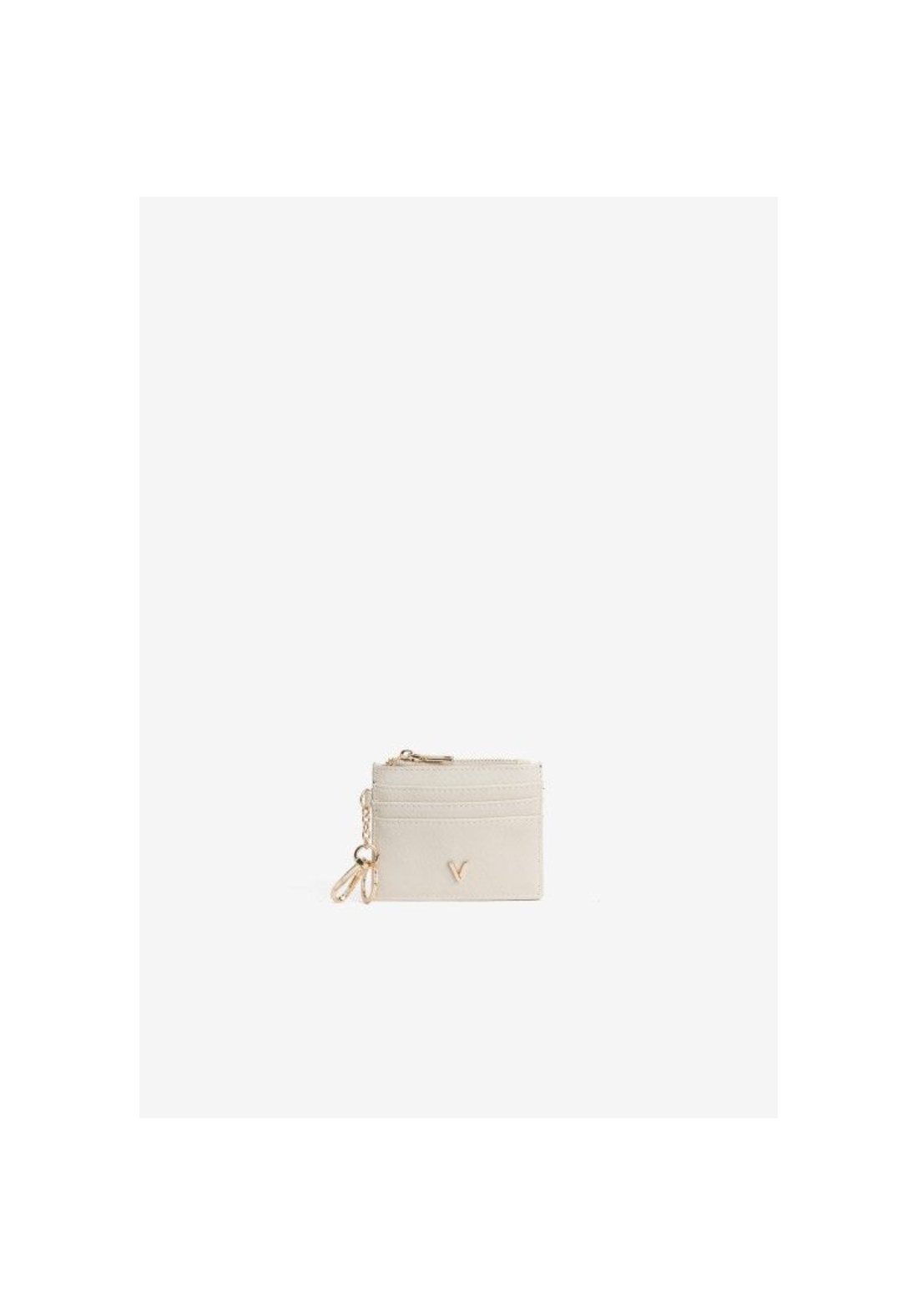 Porta monedas compacto con cierre de cremallera dorado y anilla para llaves.