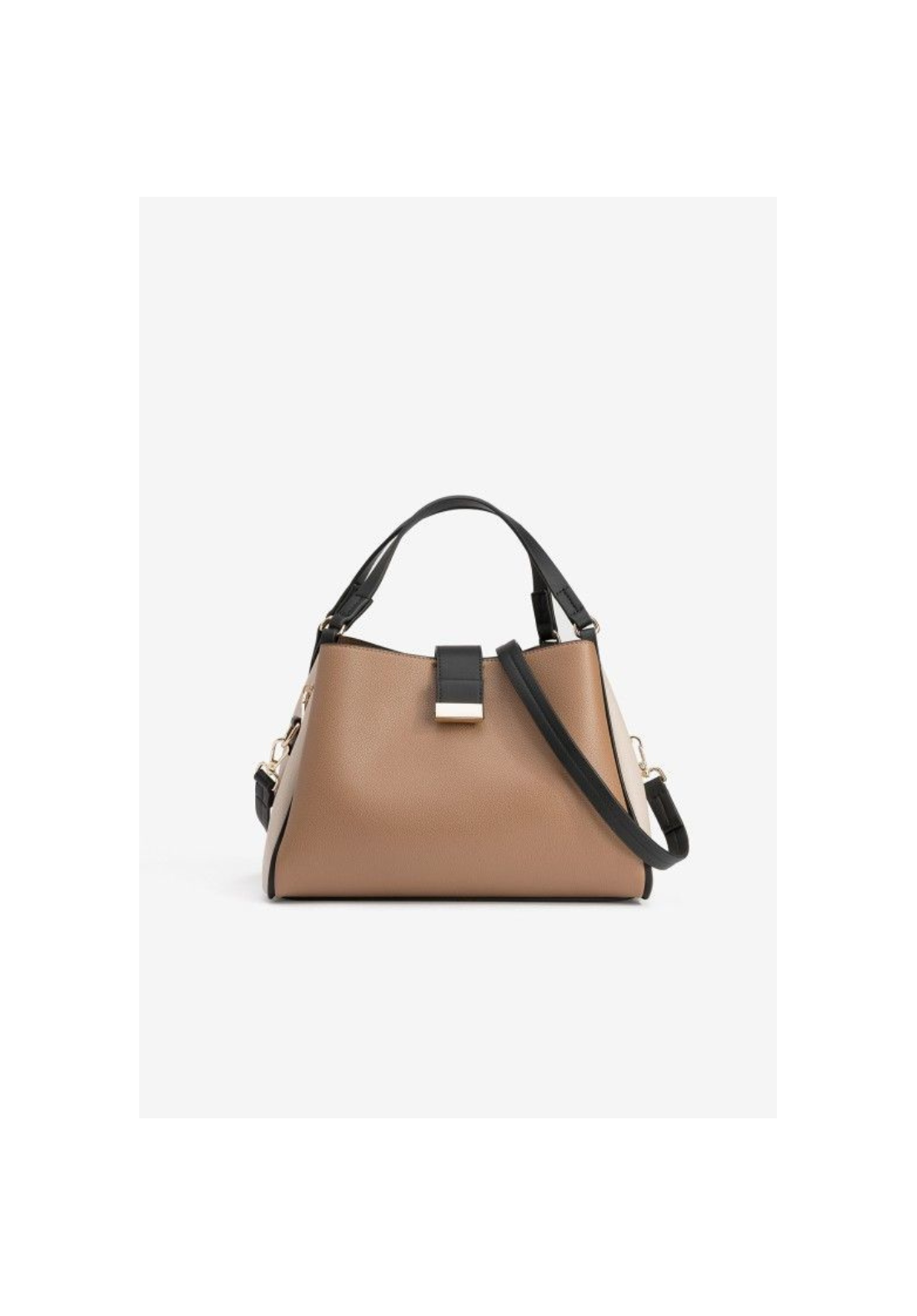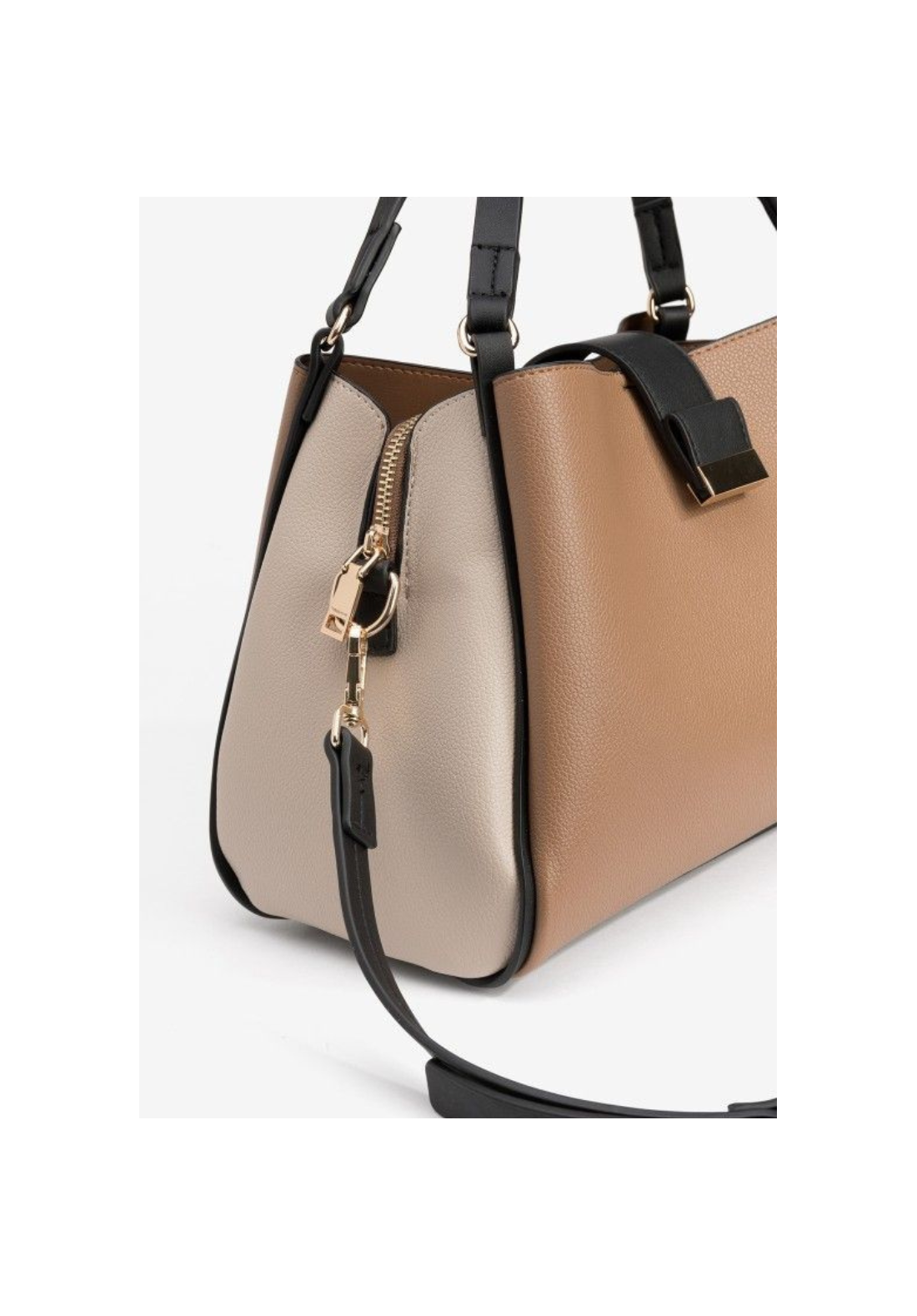 Bolso con asas negras y cierre de cremallera dorado.