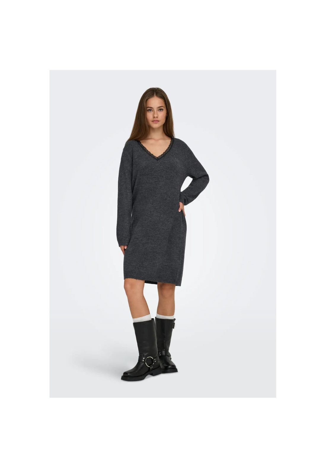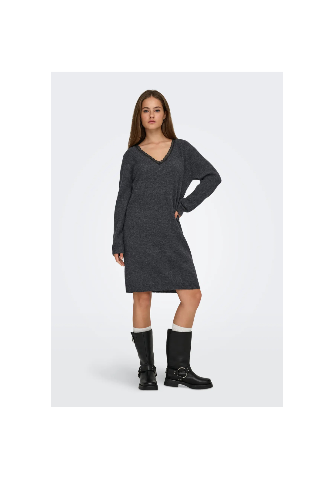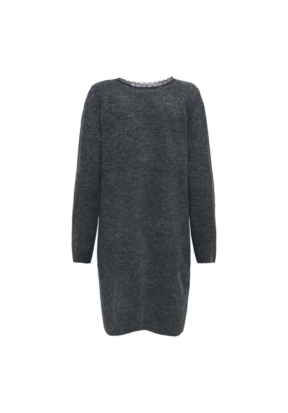 Vestido de punto, de manga larga y cuello en V. Es reversible y tiene detalle de encaje.