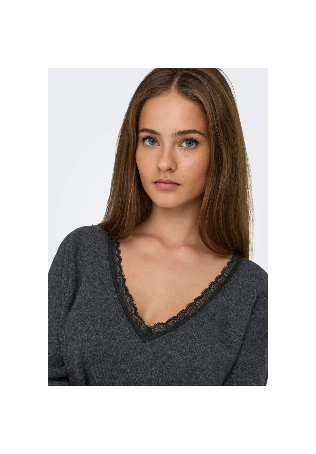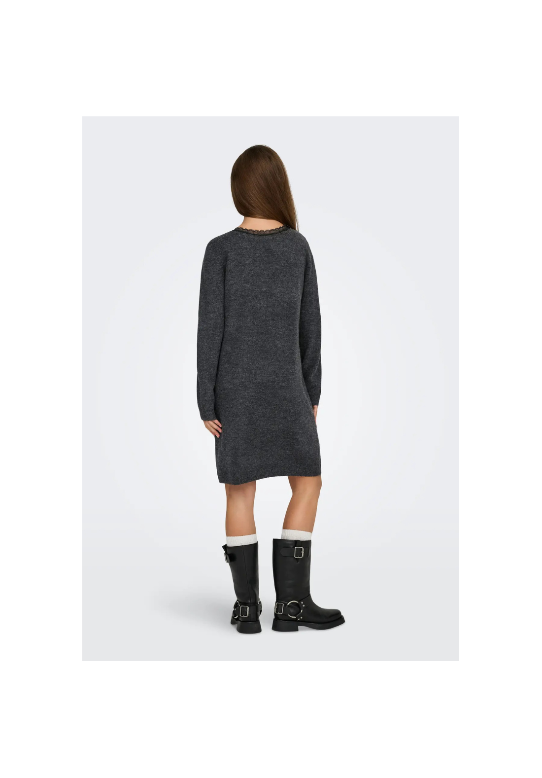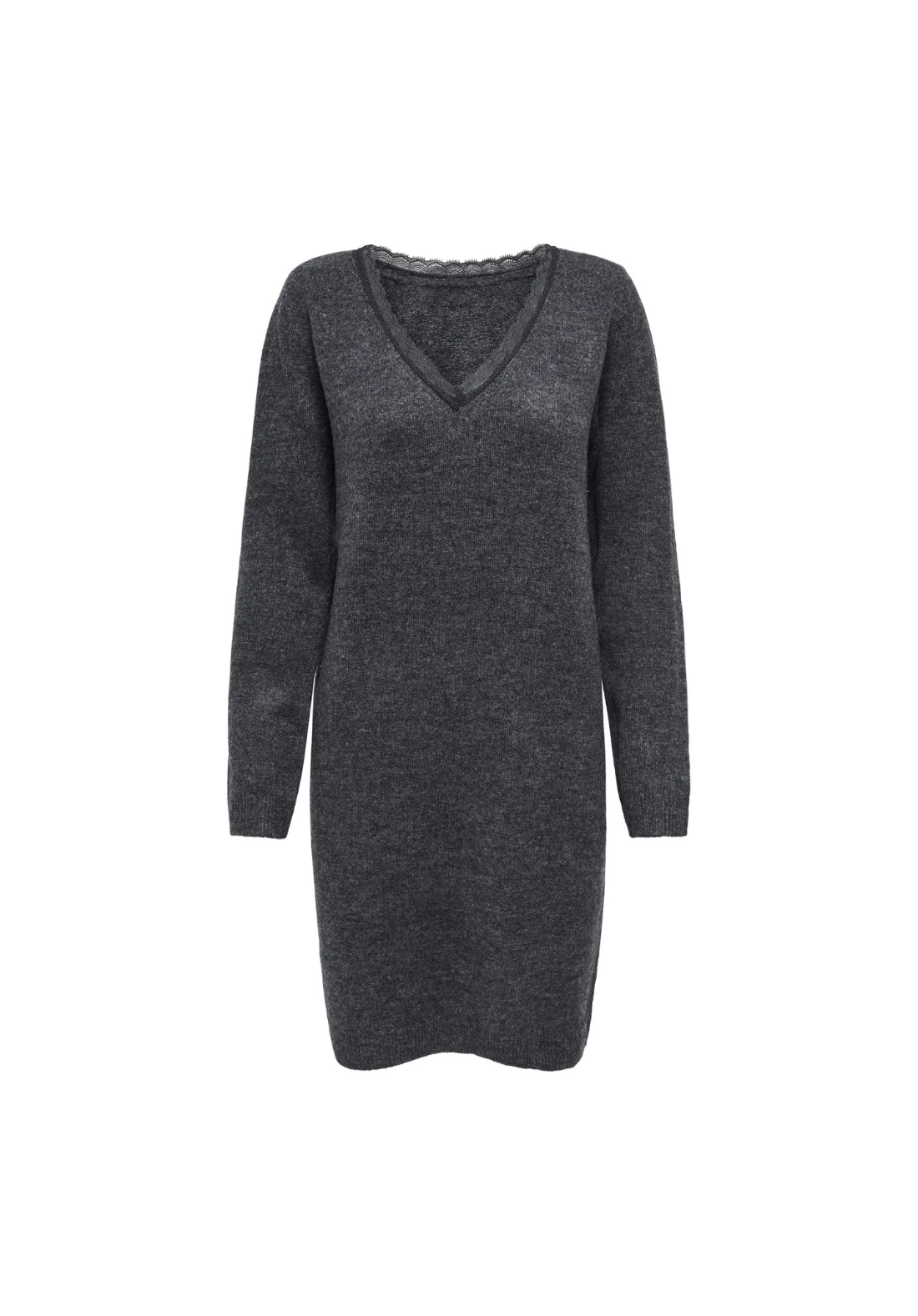 Vestido de punto, de manga larga y cuello en V. Es reversible y tiene detalle de encaje.