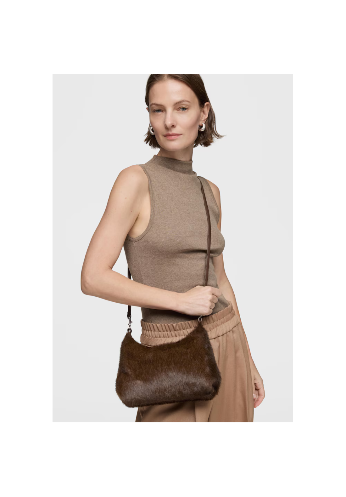 Bolso mini bandolera TOUS Hold con cierre de cremallera. Asa de mano y asa bandolera extraíble.