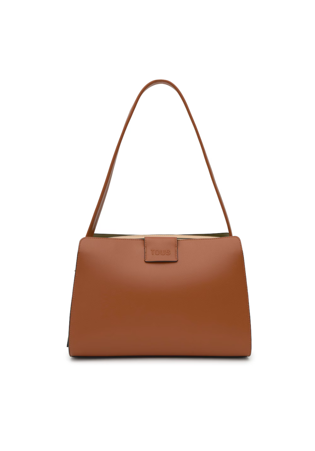 Bolso city mediano Kaos Icon de poliuretano con cierre con botón magnético. Bolsillo interior con cremallera. Asa fija de hombro.
