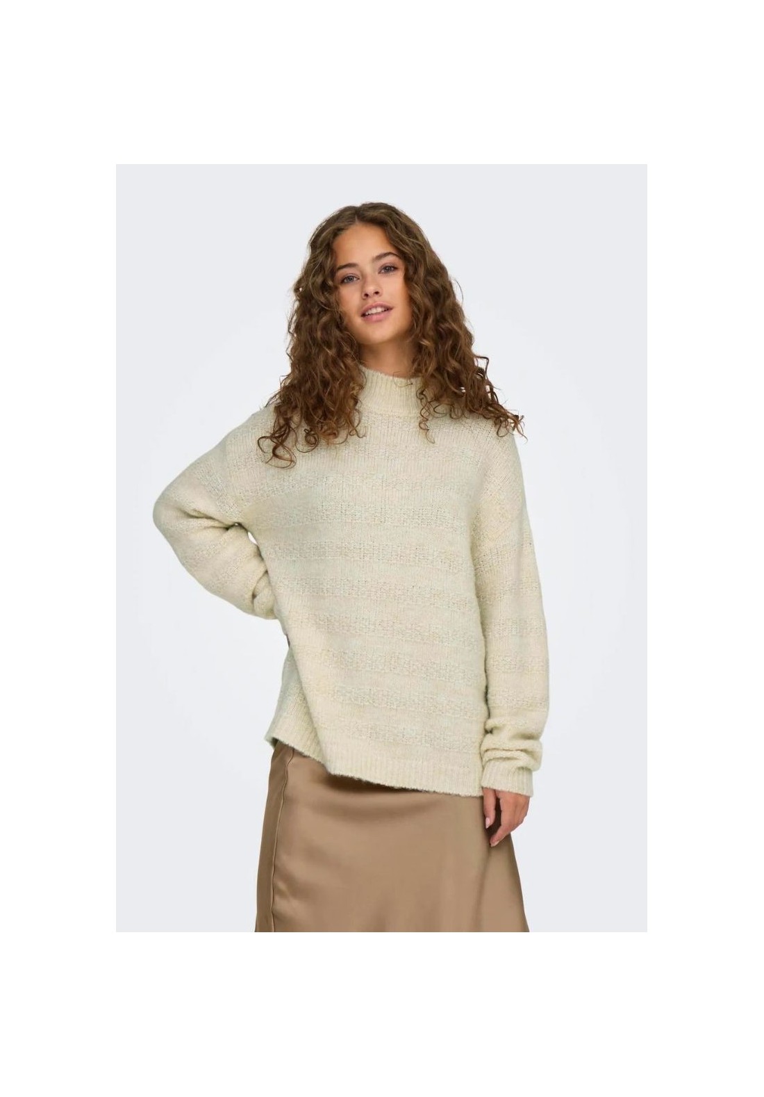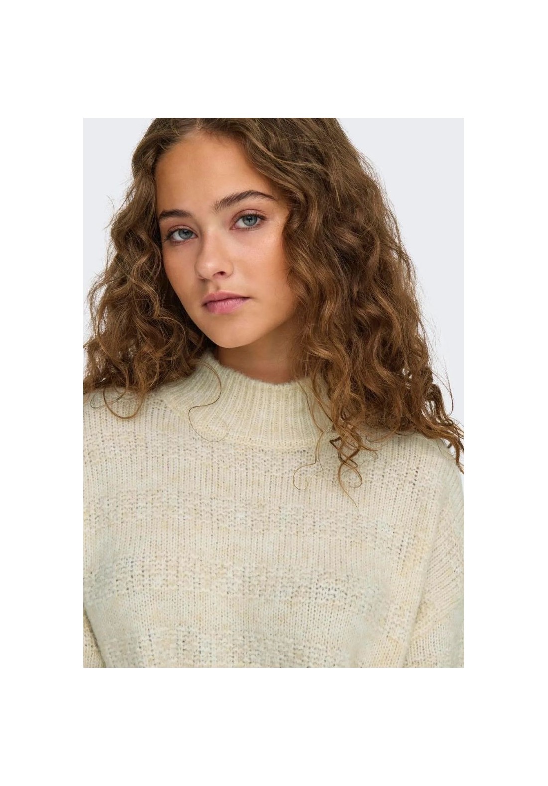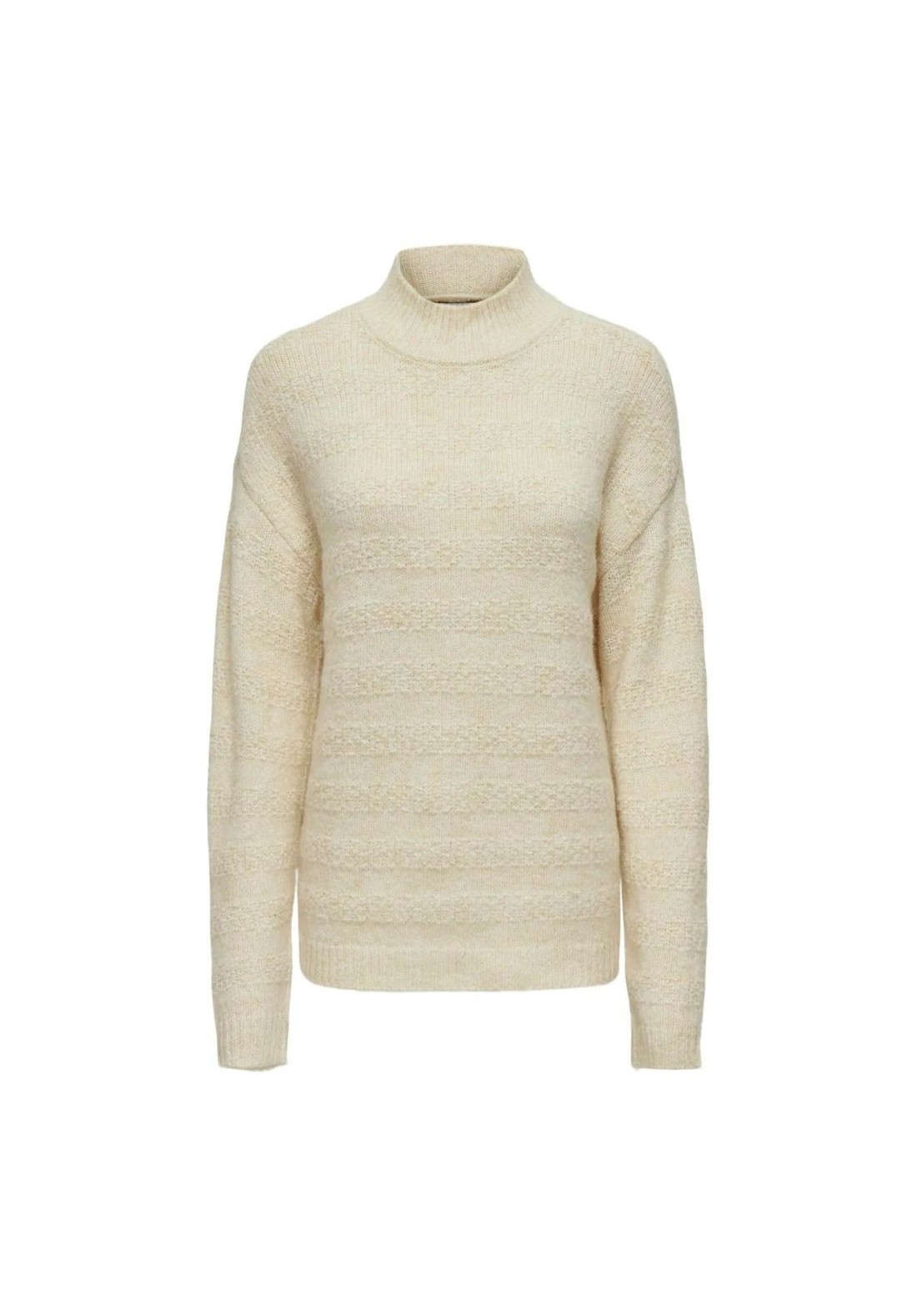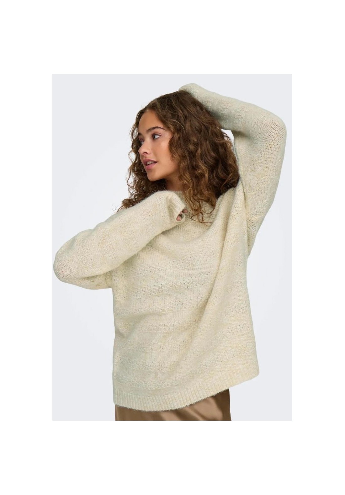 Jersey de punto con cuello semi cisne y rallas a tono con diferente punto.
