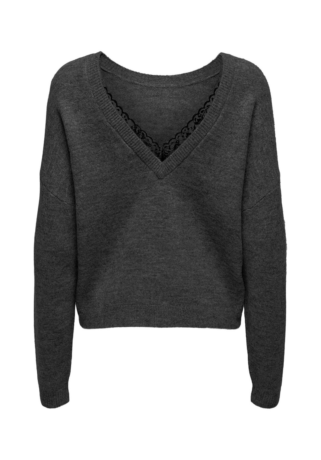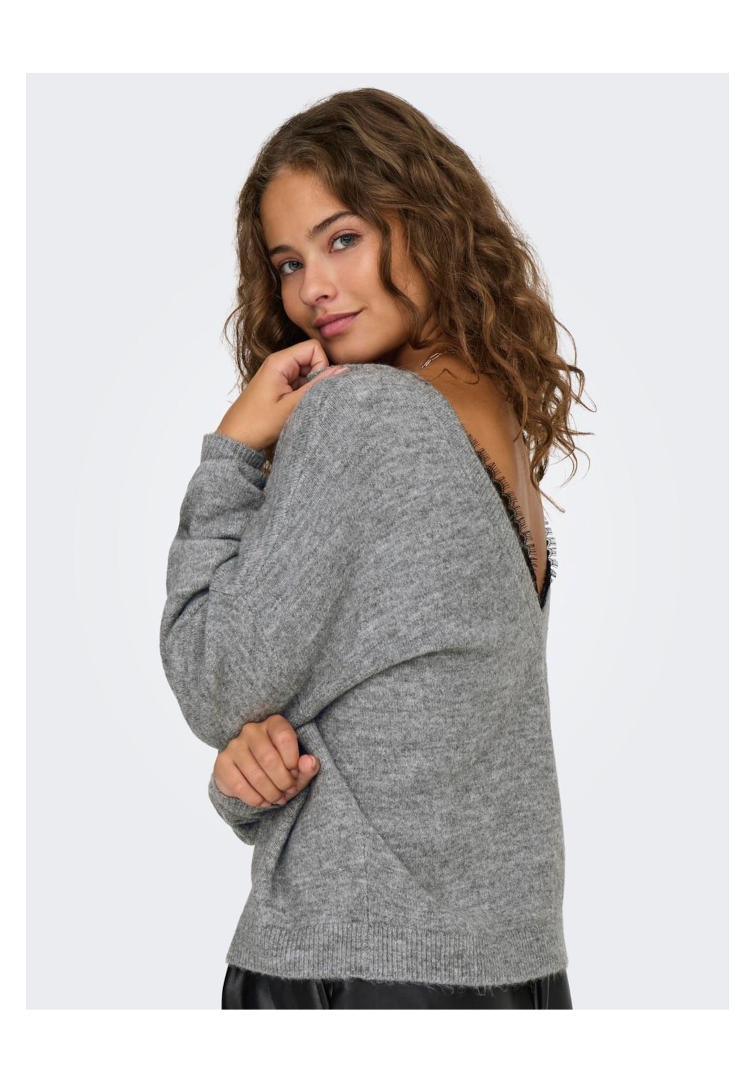 Jersey de punto reversible con escote en pico y detalle de puntilla negra. Es reversible se puede poner el escote en la espalda o en el pecho.