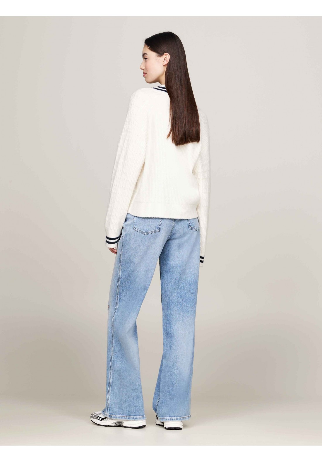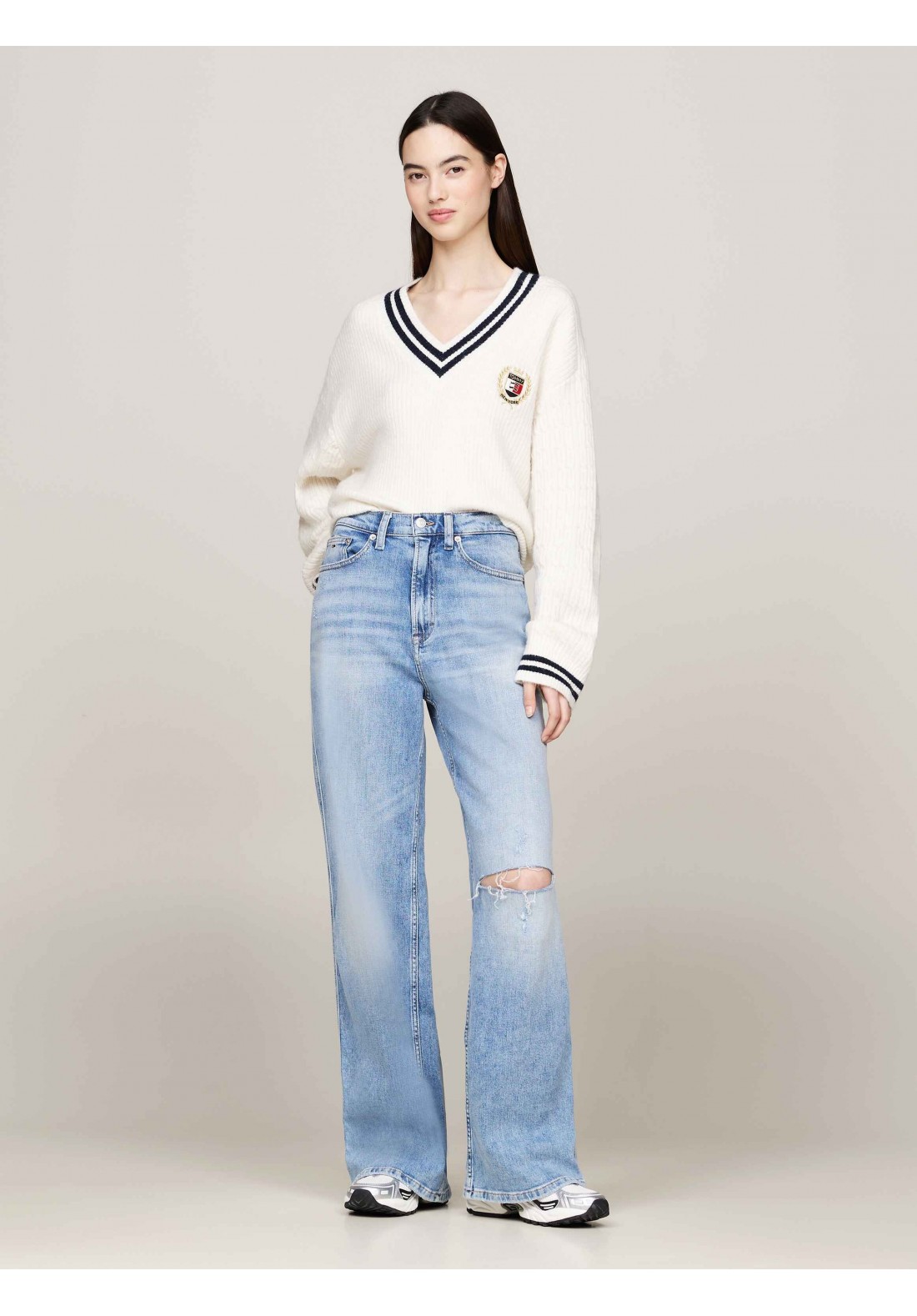 Jersey de punto con cuello pico y escudo bordado en un lateral a la altura del pecho.
