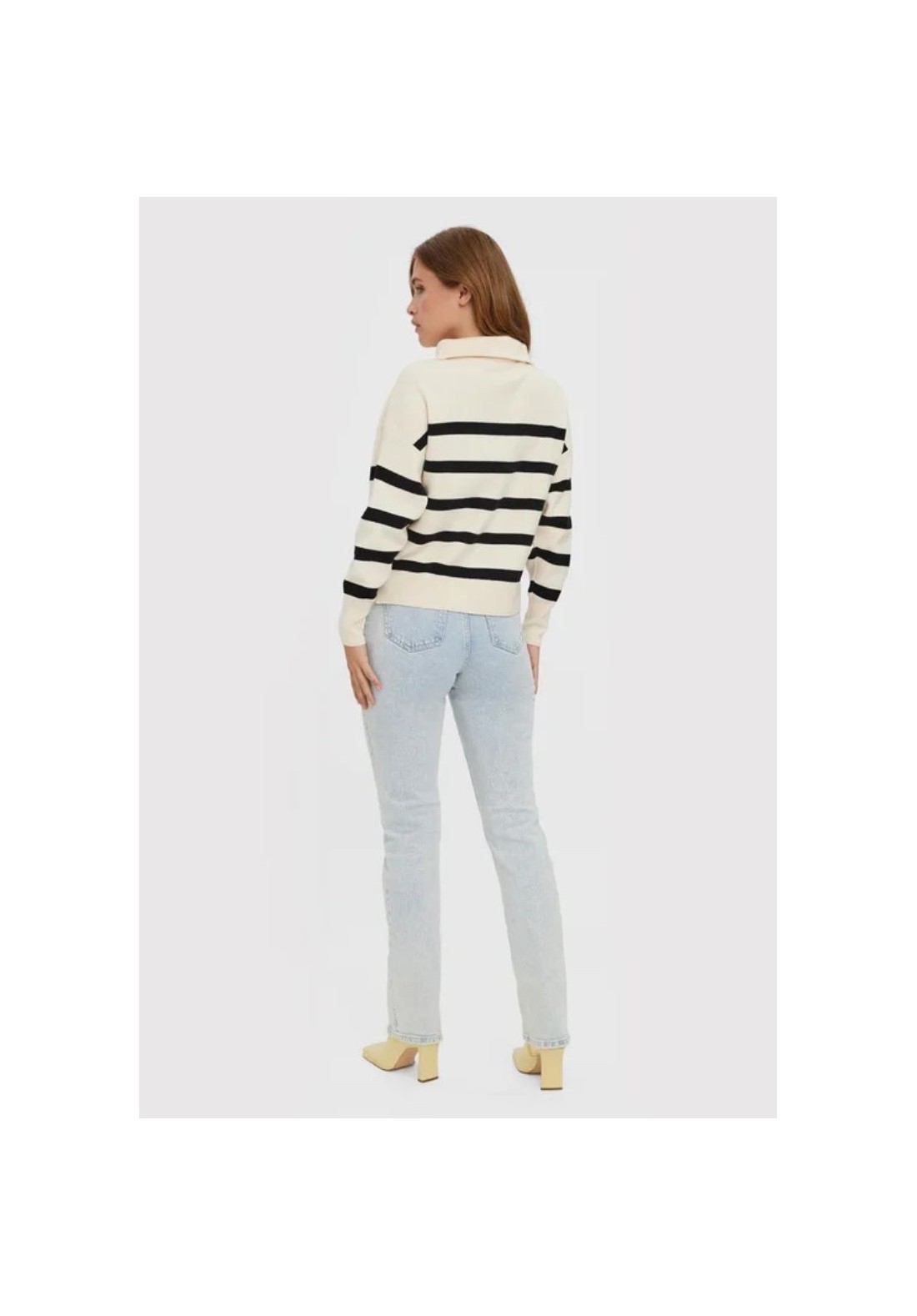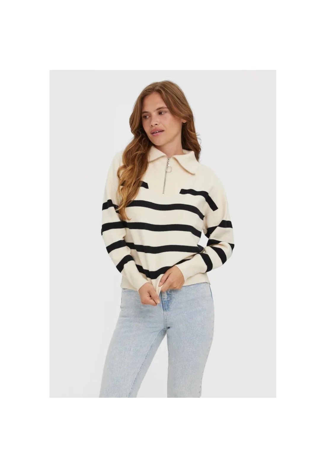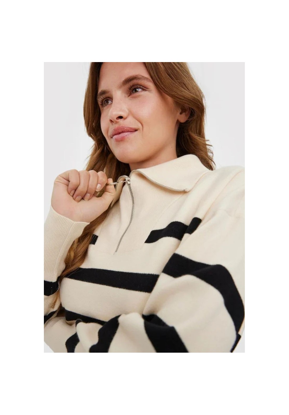 Jersey de cuello caído, cremallera y detalles a rayas