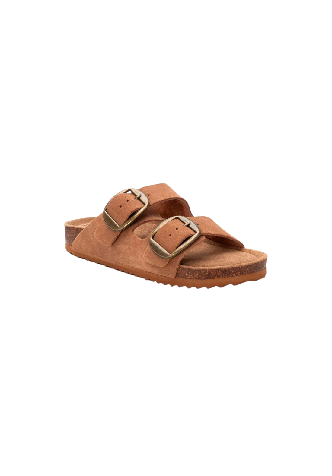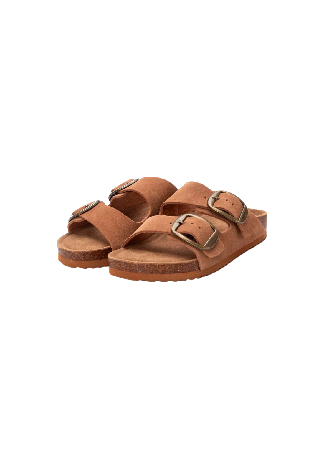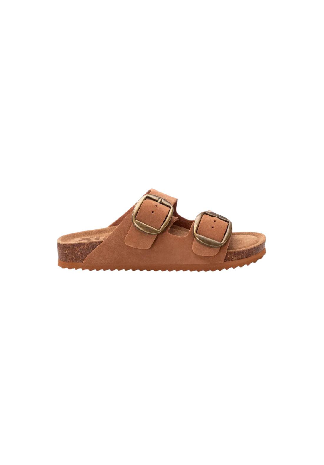 Esta sandalia está fabricada en piel serraje con hebillas funcionales para un buen ajuste. La planta es bio y la suela de goma antideslizante.