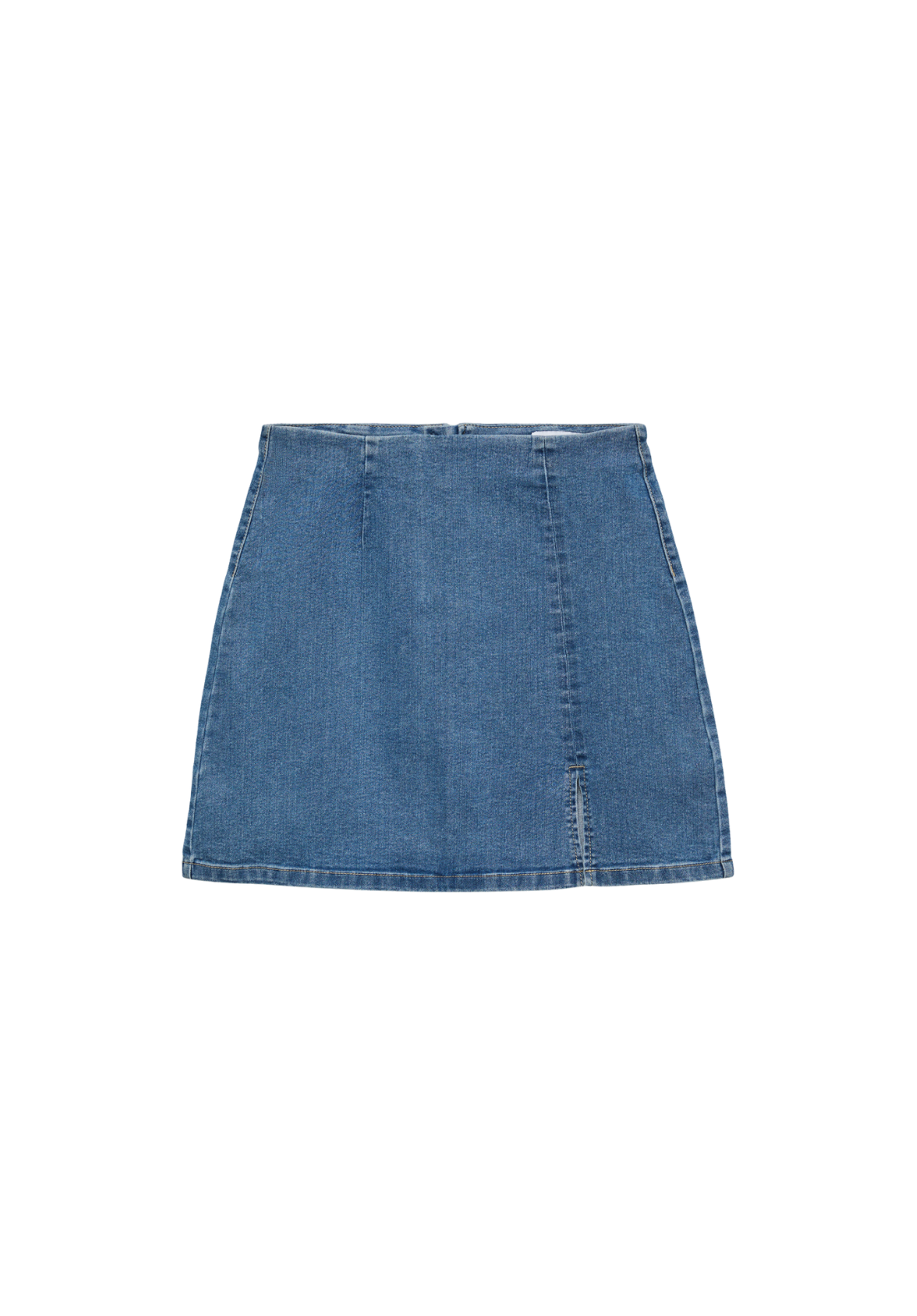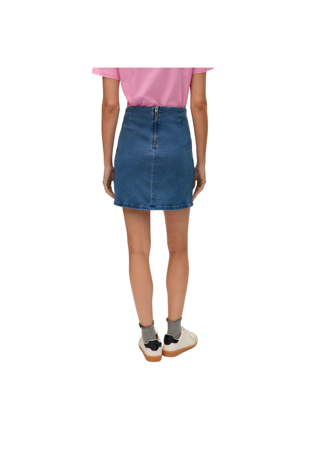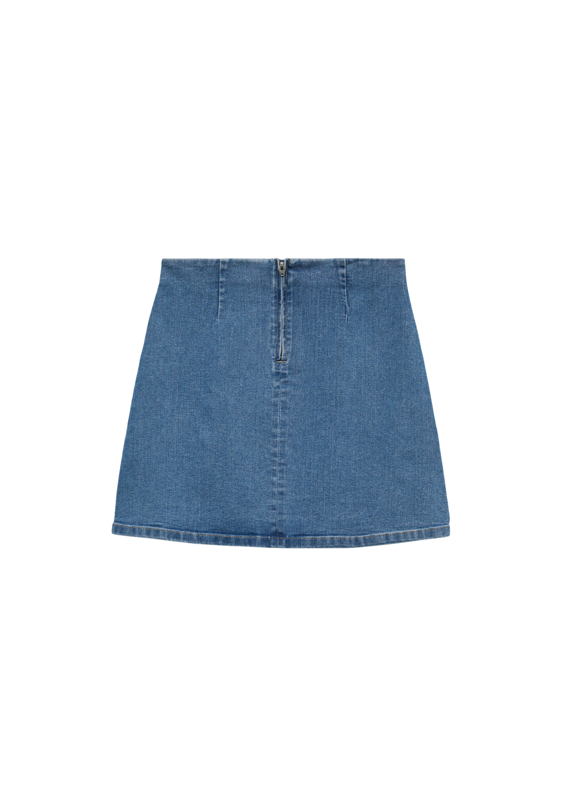 Falda vaquera corta con cierre de cremallera.